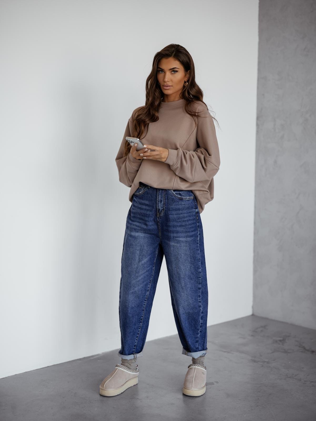 Bawełniana bluza oversizowa beżowa