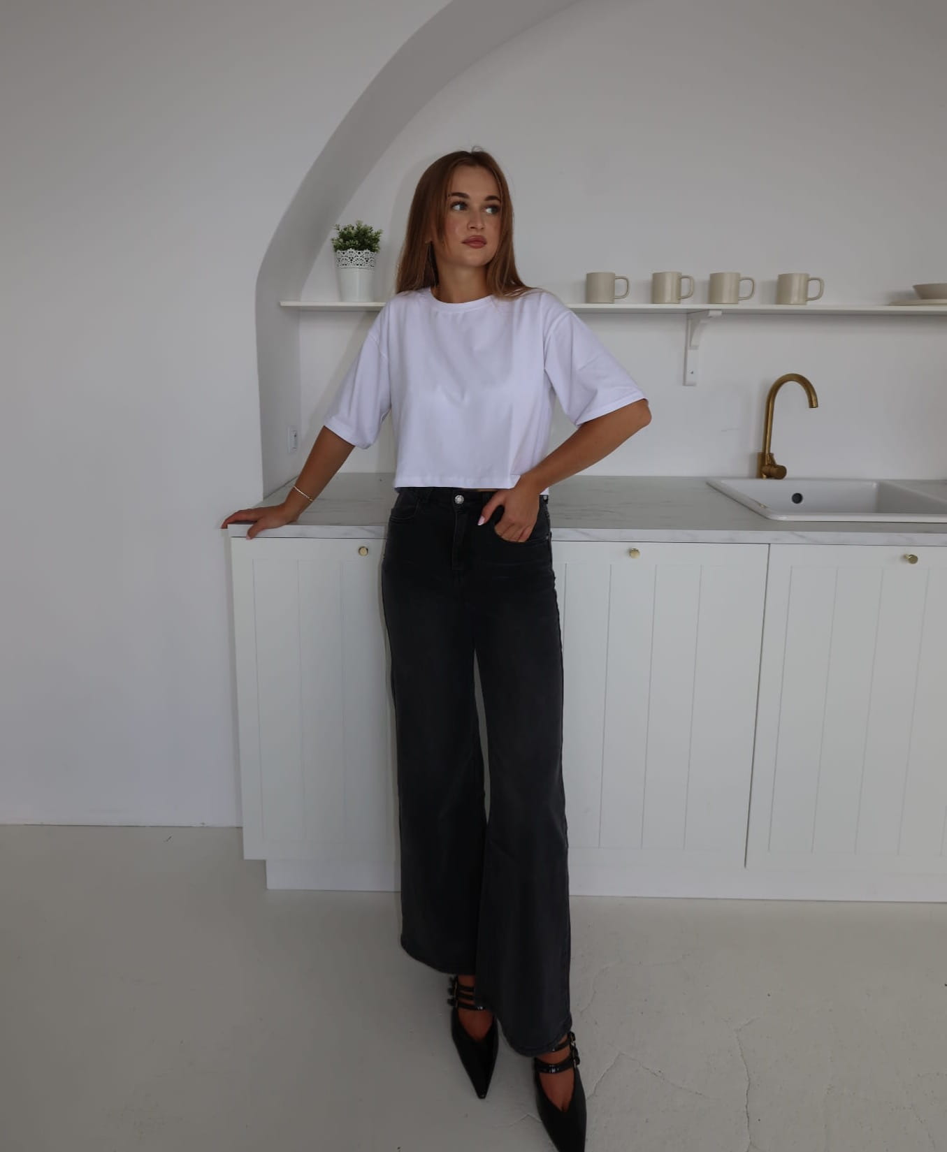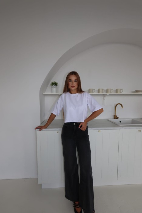 Biały krótki top o luźnym kroju. Wykonany z lekkiego materiału, z krótkim rękawem i prostym wykończeniem. Minimalistyczny i uniwersalny – idealny do codziennych stylizacji.