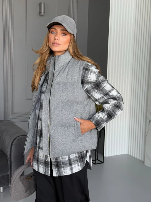 Bezrękawnik damski Noel jasnoszary z wełną