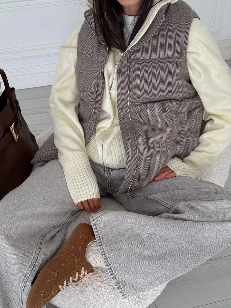 Bezrękawnik damski z domieszką wełny – ponadczasowy fason w nowoczesnym wydaniu.