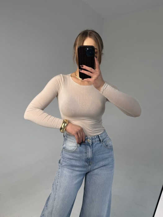 Bluzka z wiskozy i kaszmiru beżowa