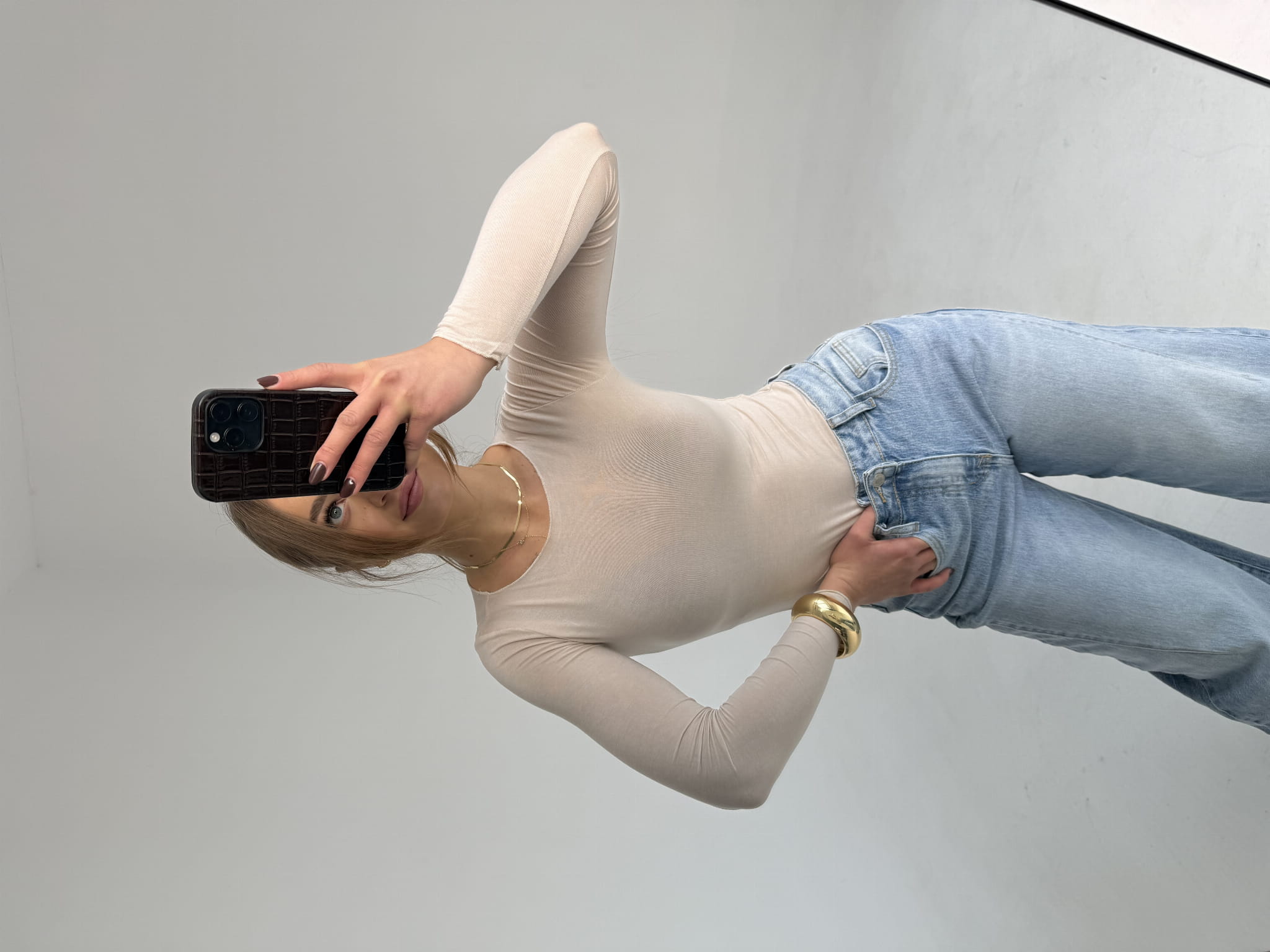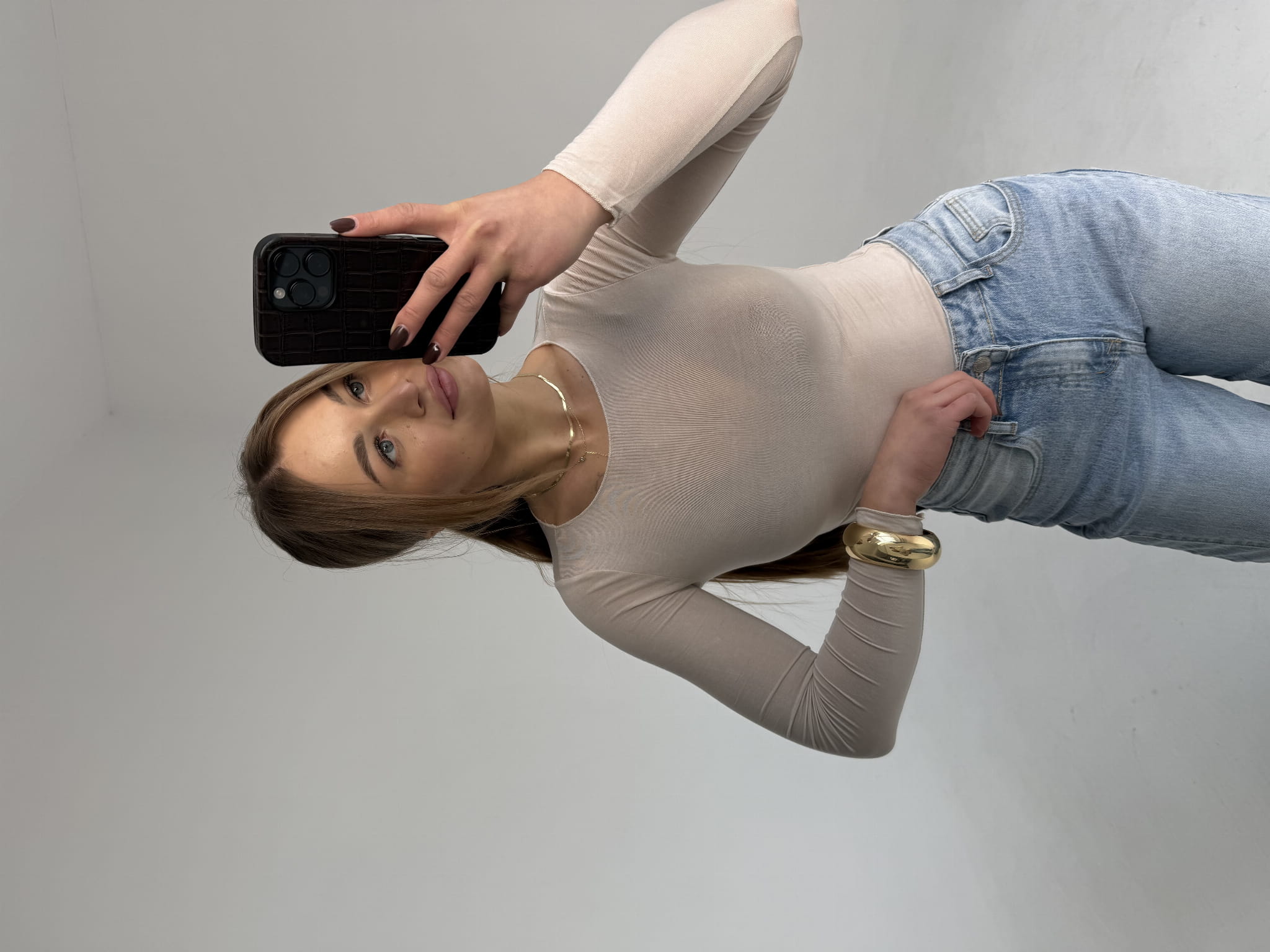 Bluzka Basic z wiskozy i kaszmiru – minimalistyczna baza garderoby o wyjątkowo miękkim, przyjemnym w dotyku wykończeniu. Dopasowany krój, długi rękaw i klasyczny dekolt sprawiają, że idealnie sprawdzi się solo lub pod marynarkę. Komfortowa, oddychająca i ponadczasowa – must have na cały sezon.