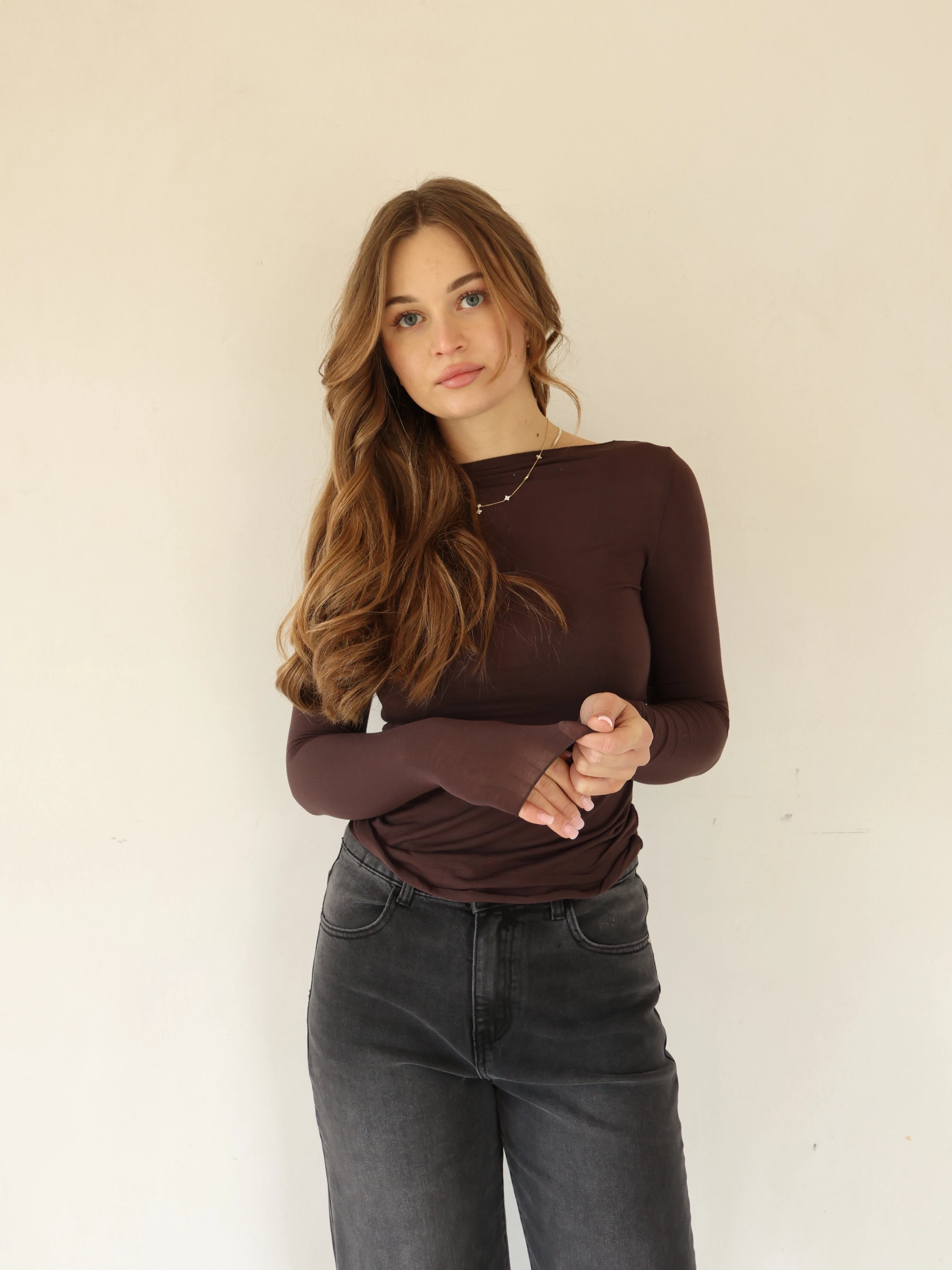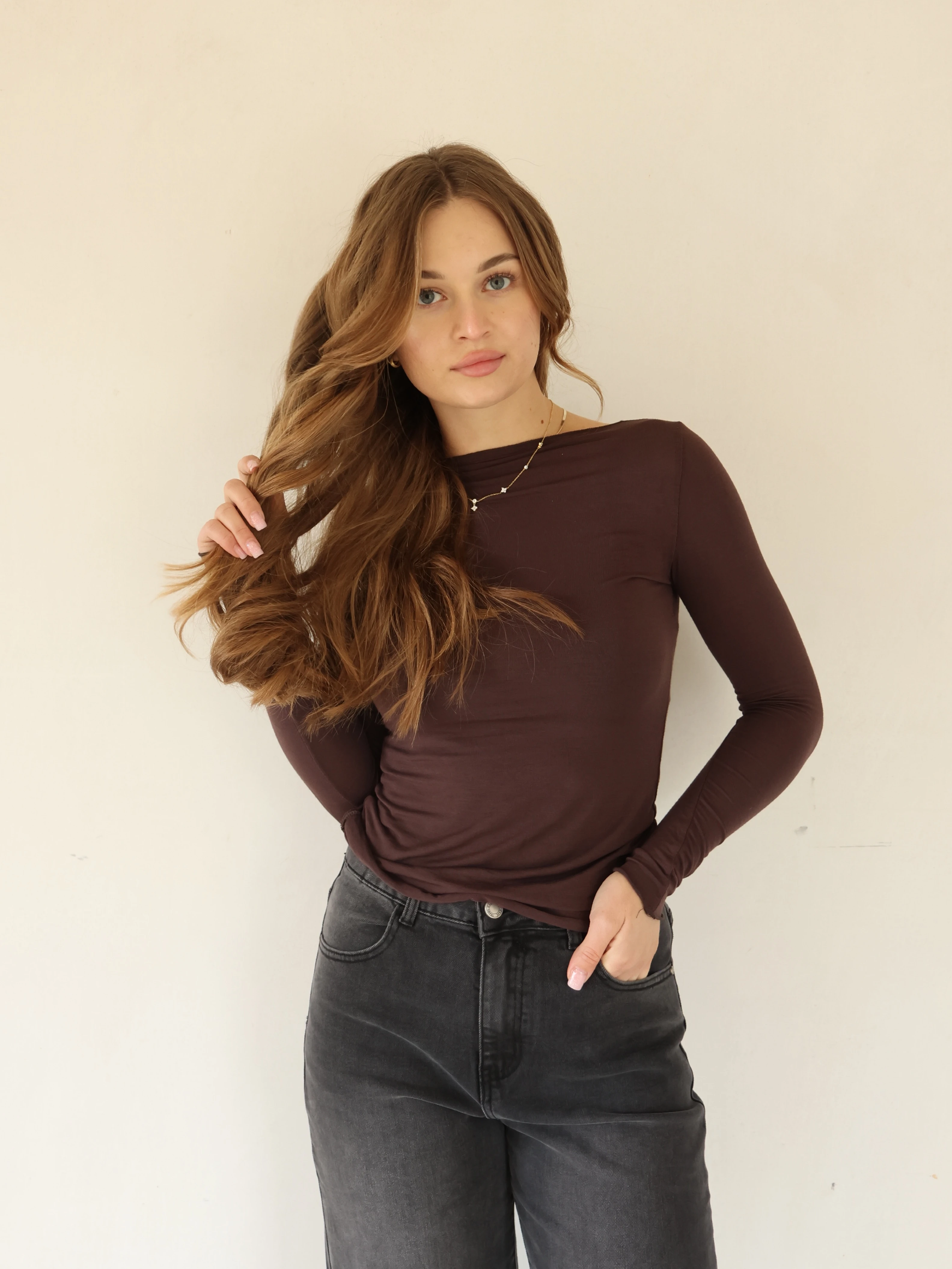 Bluzka z wiskozy i kaszmiru czekoladowa