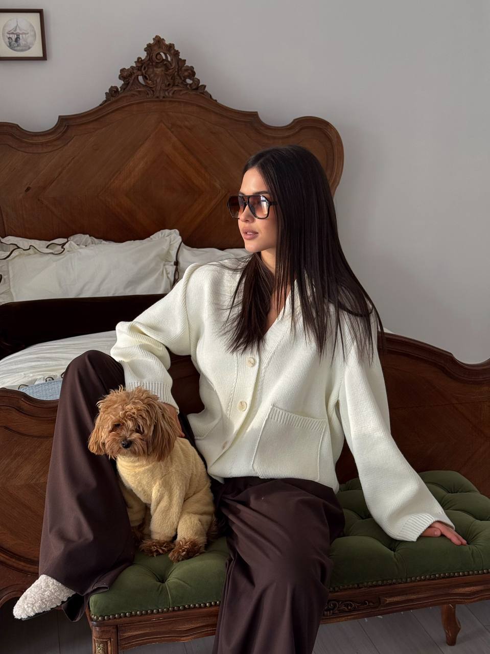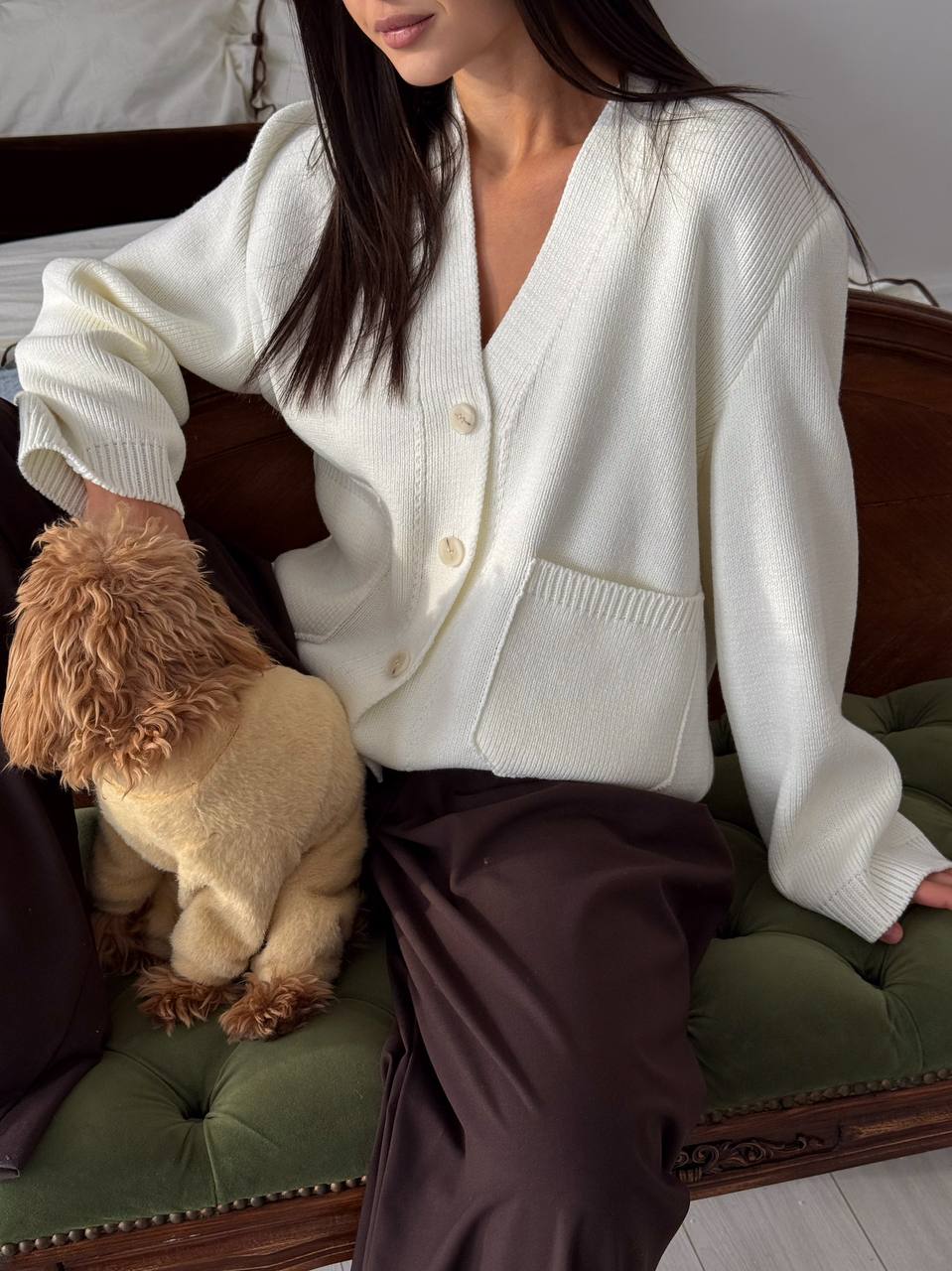 Kardigan wełniany o oversizowym kroju Rozalia biały