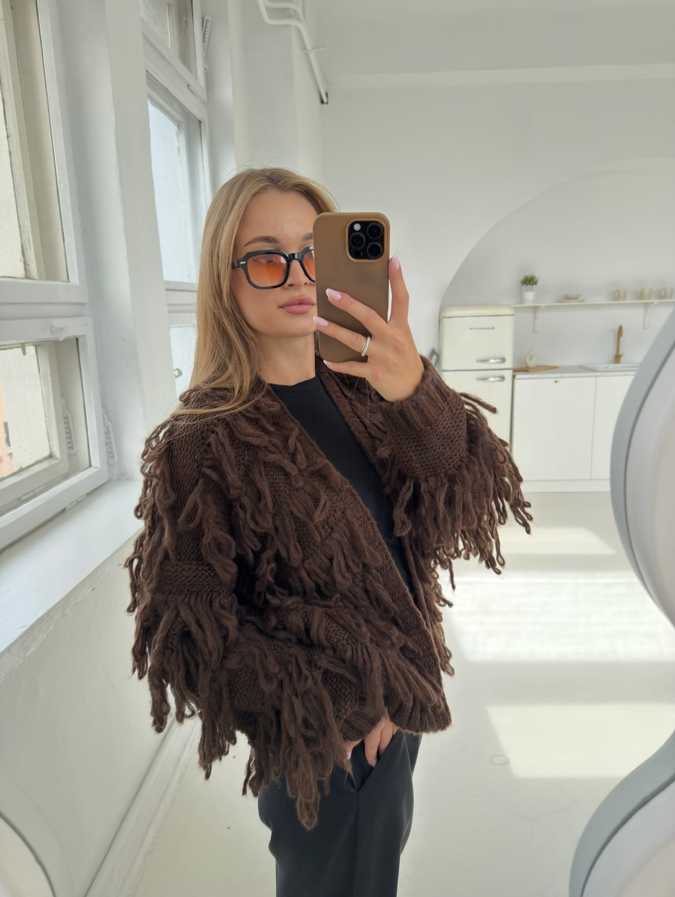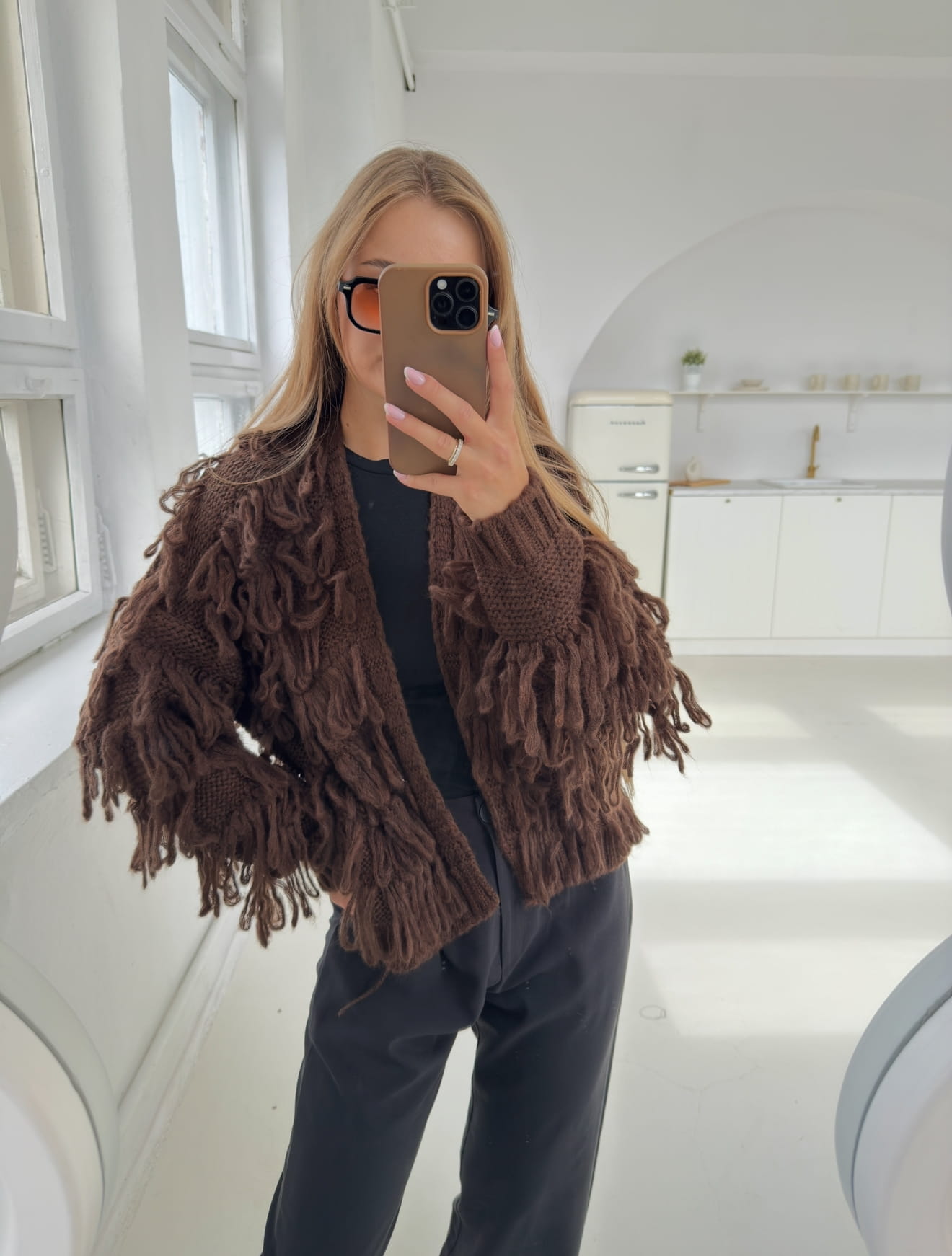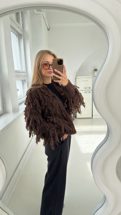 Kardigan z frędzlami Mona czekoladowy