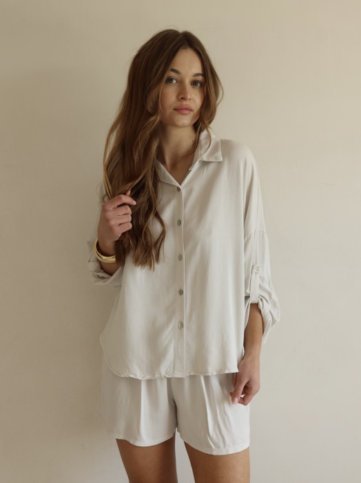 Komplet damski Ada z koszulą i spodenkami wiskozowy ecru