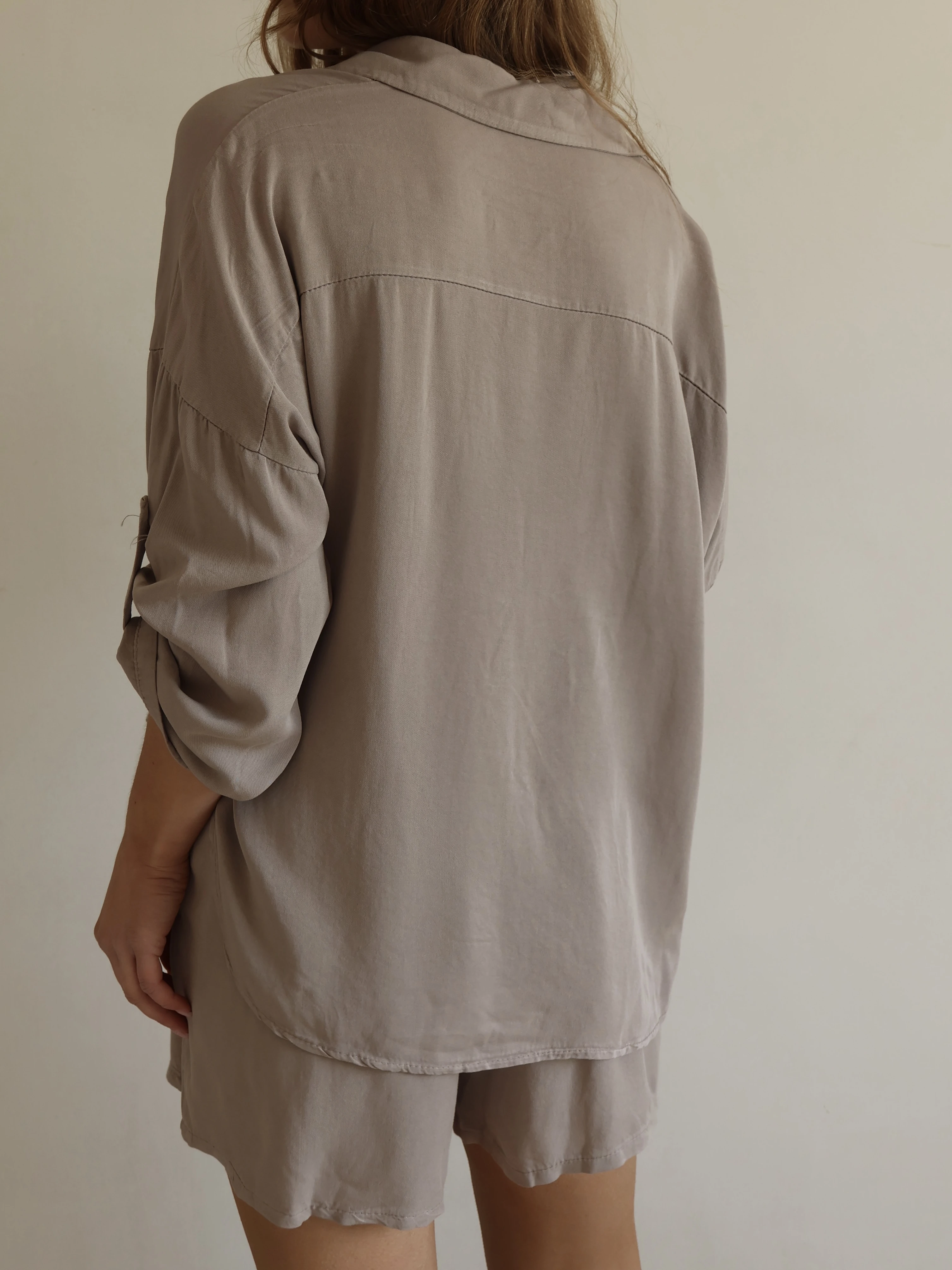 Lekki, minimalistyczny komplet damski wykonany z przewiewnej mieszanki wiskozy i lyocellu.