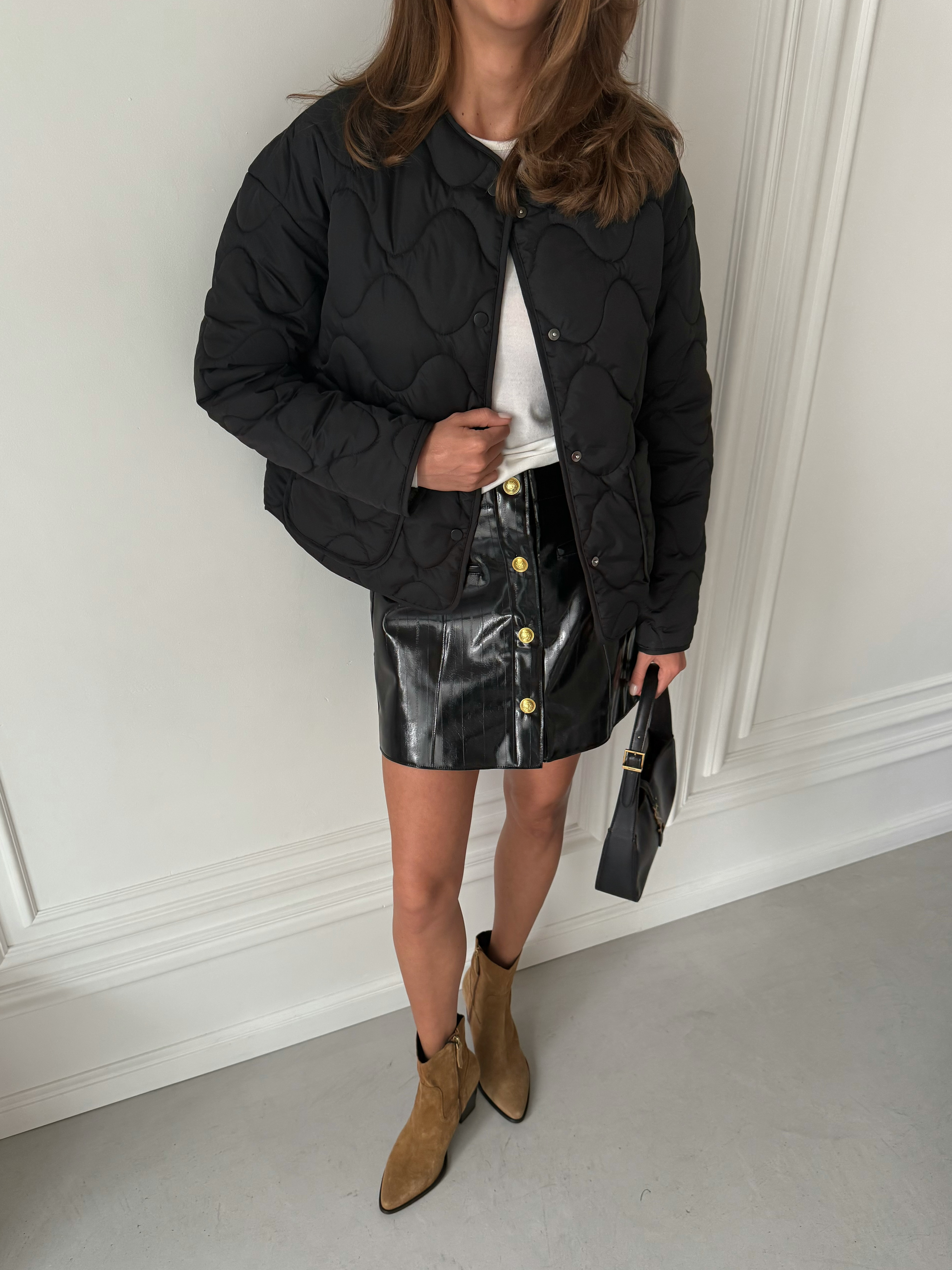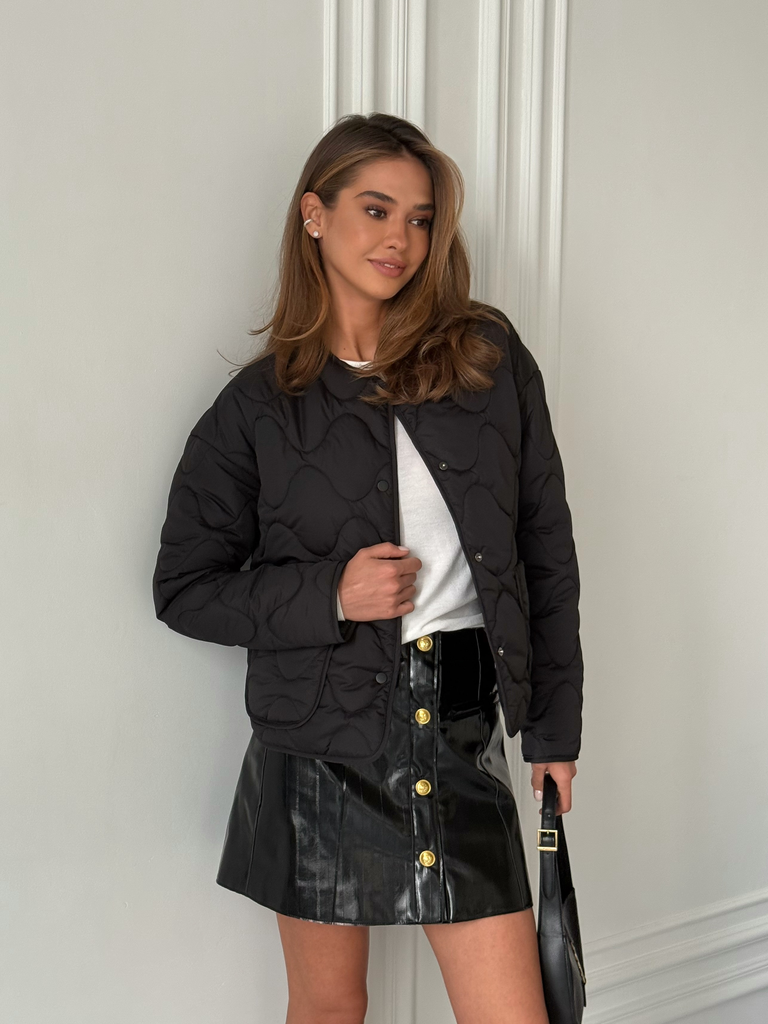 Lekka, pikowana kurtka w modnym odcieniu czekoladowego brązu, idealna na sezon przejściowy. Luźniejszy krój zapewnia wygodę i świetnie komponuje się zarówno z jeansami, jak i eleganckimi stylizacjami. Zapinana na napy, doskonała na chłodniejsze wiosenne dni.