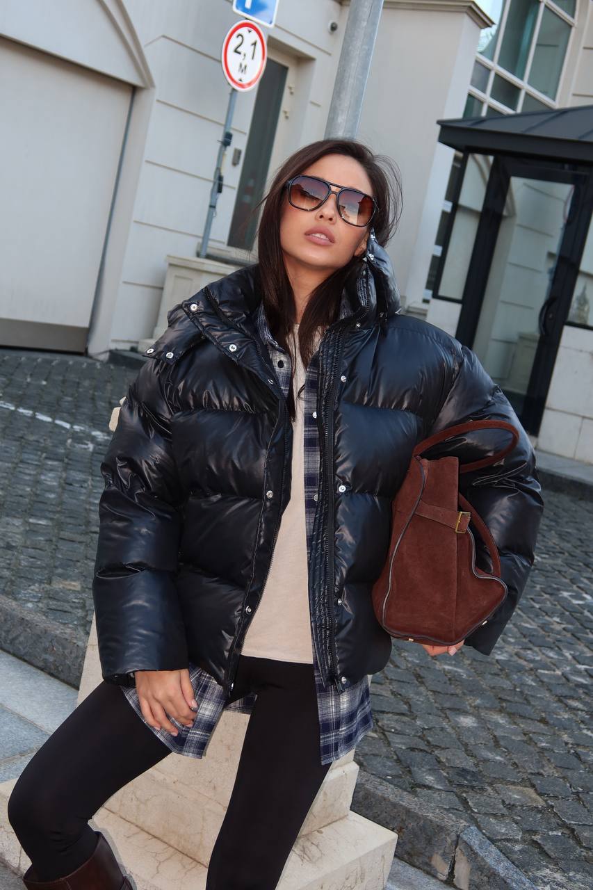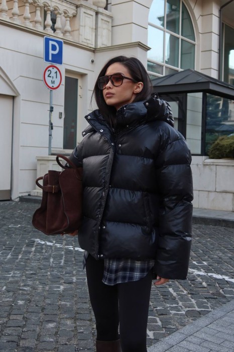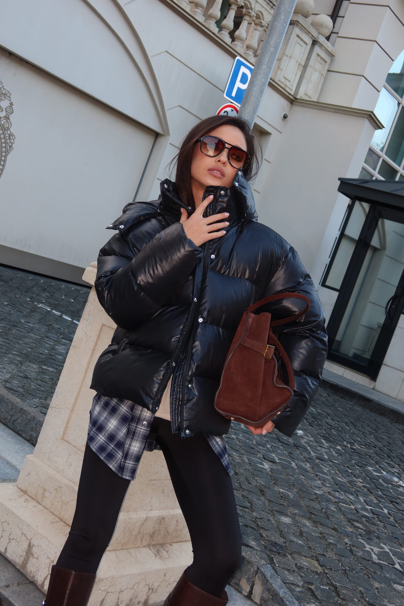 Kurtka puchowa damska – kolor czarny, uniwersalny rozmiar