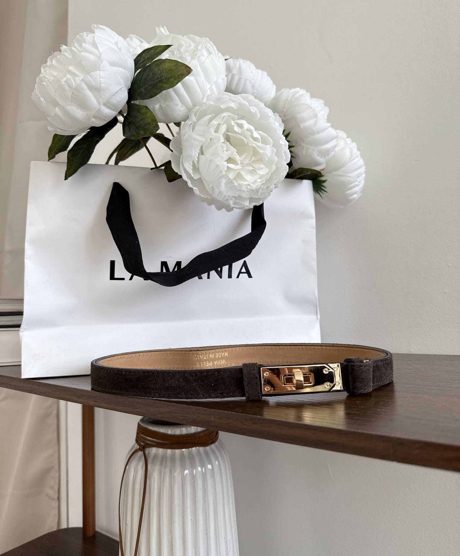 Ten delikatny, ręcznie wykonany pasek ze skóry naturalnej to połączenie klasycznej elegancji i ponadczasowego stylu. Utrzymany w odcieniu subtelnego beżu, idealnie dopełni zarówno codzienne, jak i bardziej formalne stylizacje. Złota klamra nawiązuje formą do kultowego zapięcia typu “turn-lock”, dodając całości szykownego charakteru.