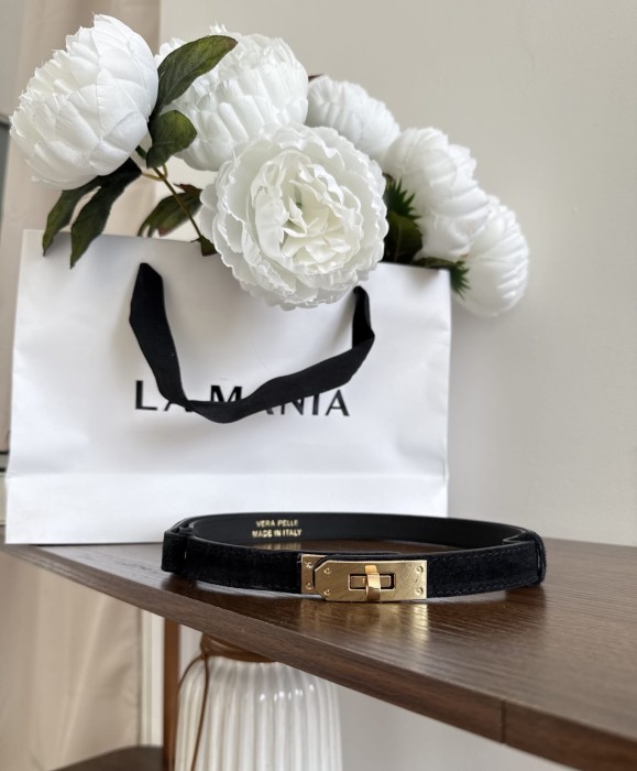 Pasek z zamszu naturalnego ze złotą klamrą czarny