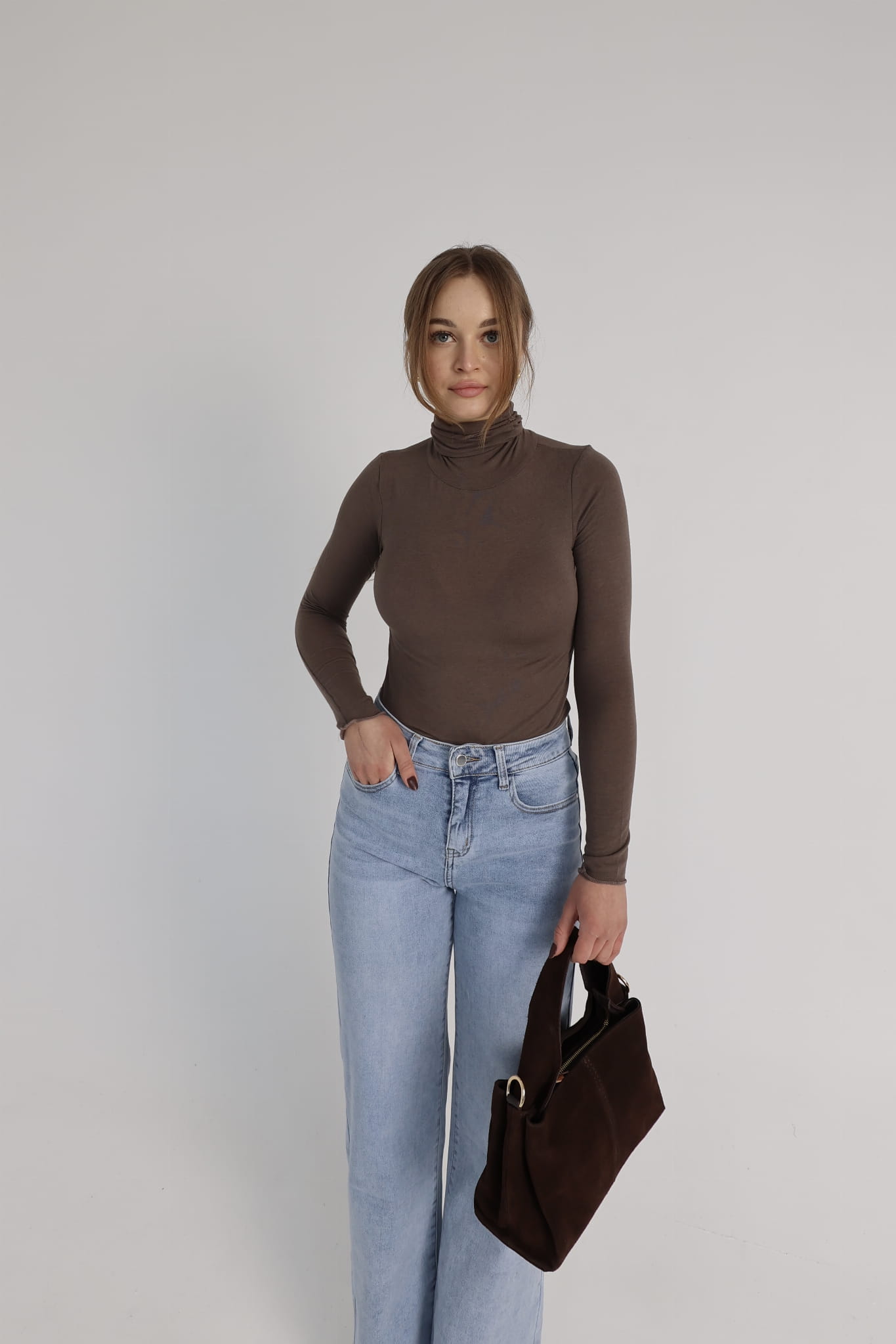 Półgolf z wiskozy i kaszmiru czekoladowy