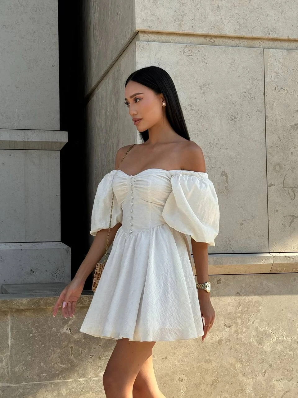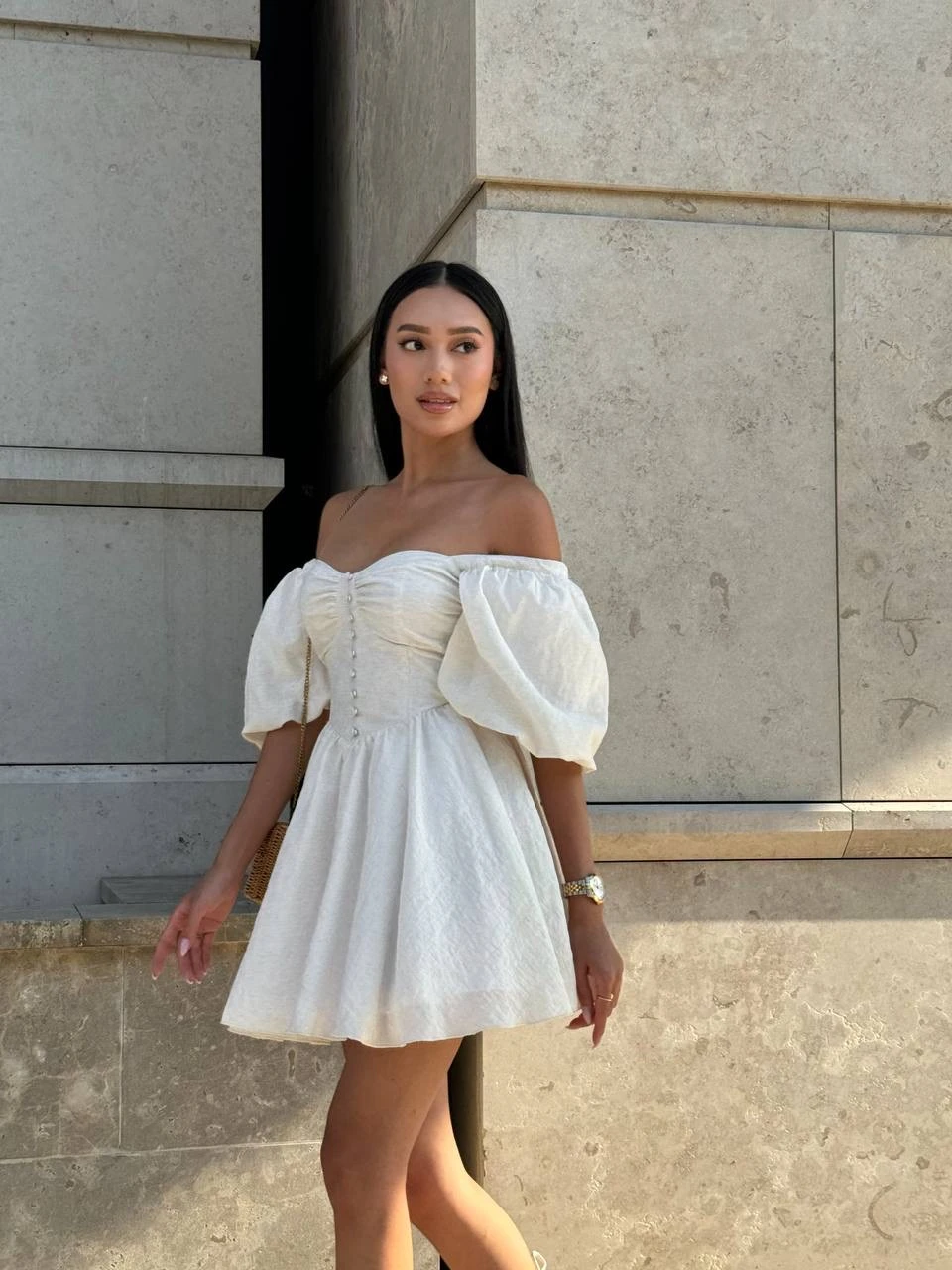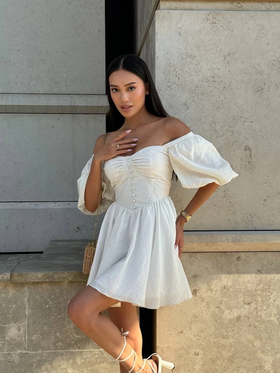 Biała sukienka Bella Light łączy ponadczasową elegancję z nowoczesną formą, dzięki czemu pozostaje uniwersalnym elementem garderoby.