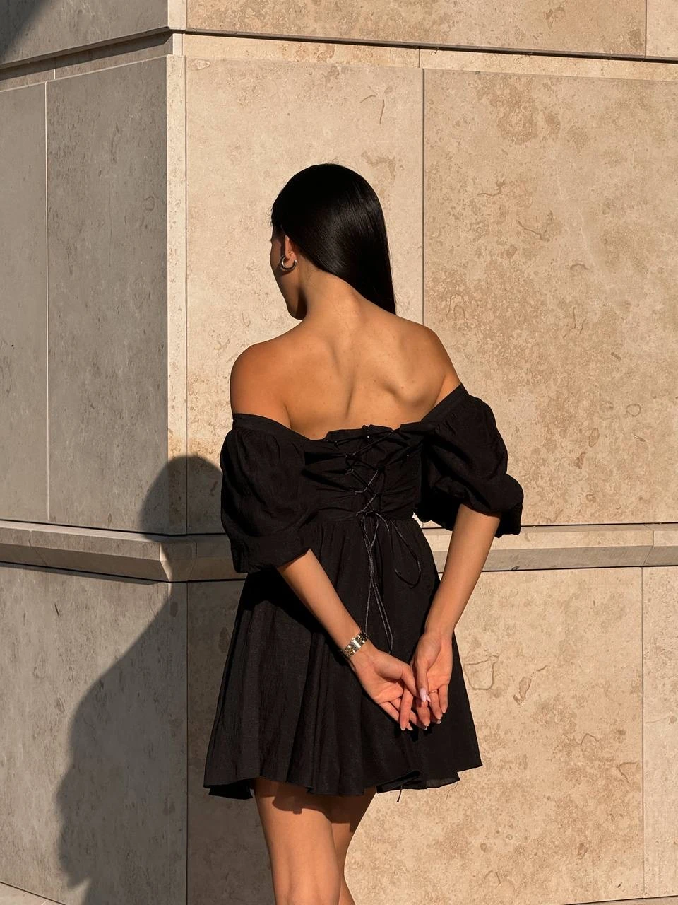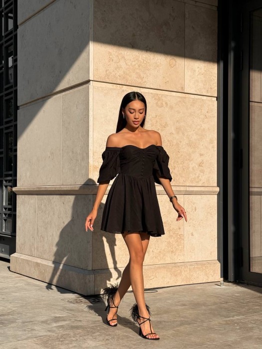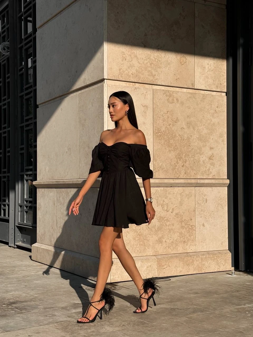 Sukienka Bella Light – czarna sukienka z odkrytymi ramionami