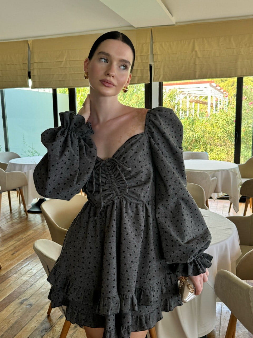 Sukienka z bawełny ciemnoszara w serduszka Lovely