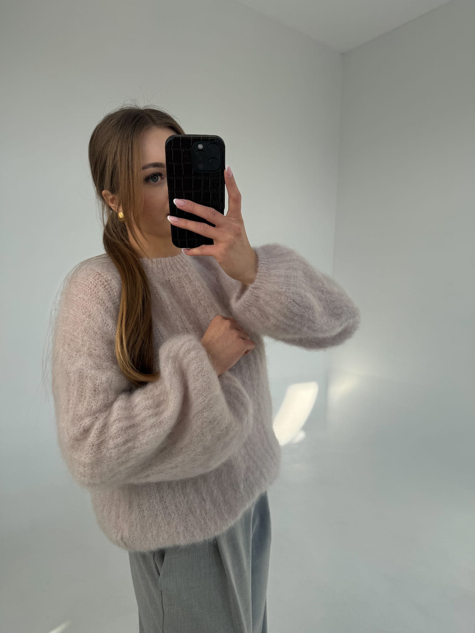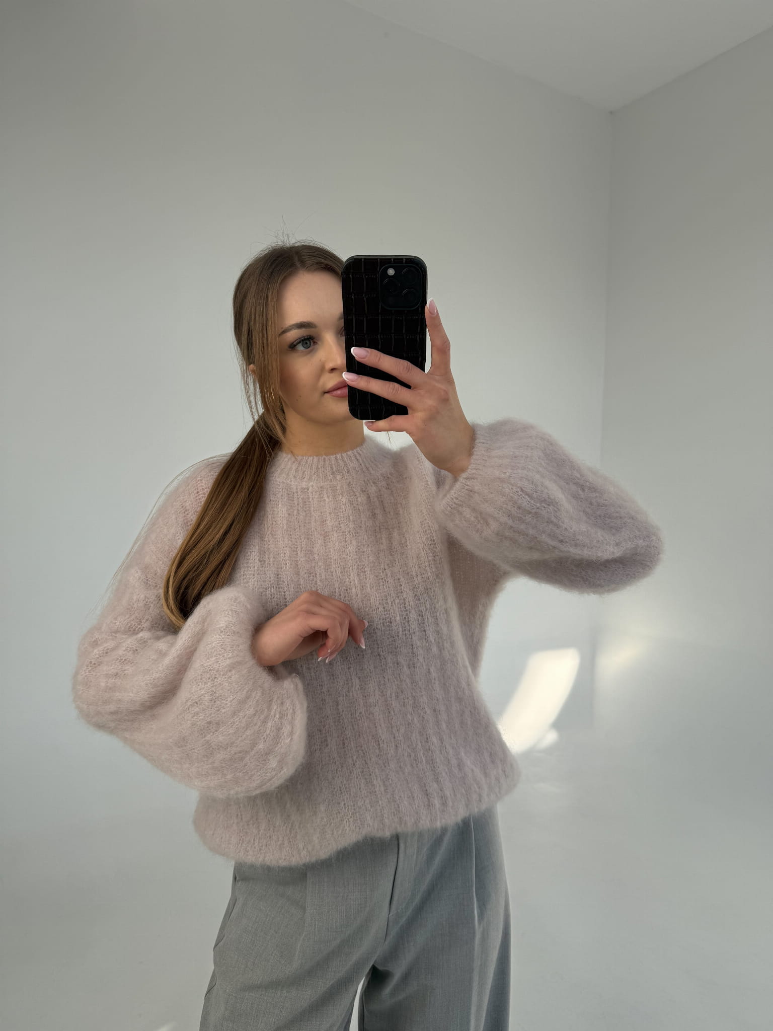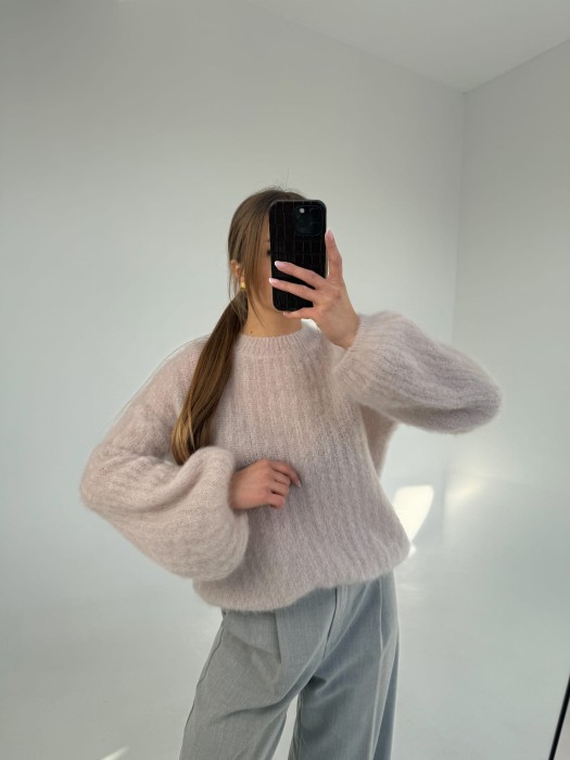 Sweter 81% kid moher Cloudy jasnoróżowy