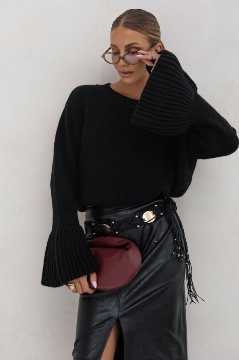 Miękki, ciepły sweter wykonany w 50% z wełny, który gwarantuje wyjątkowy komfort i doskonałą izolację w chłodniejsze dni. Model wyróżnia się szerokimi, efektownymi rękawami o rozkloszowanym kroju, nadającymi całości nowoczesnego, minimalistycznego charakteru. Klasyczny, lekko oversize’owy fason oraz gładki splot sprawiają, że sweter idealnie komponuje się zarówno z eleganckimi, jak i codziennymi stylizacjami. Idealny wybór dla osób ceniących jakość, wygodę i ponadczasowy design.