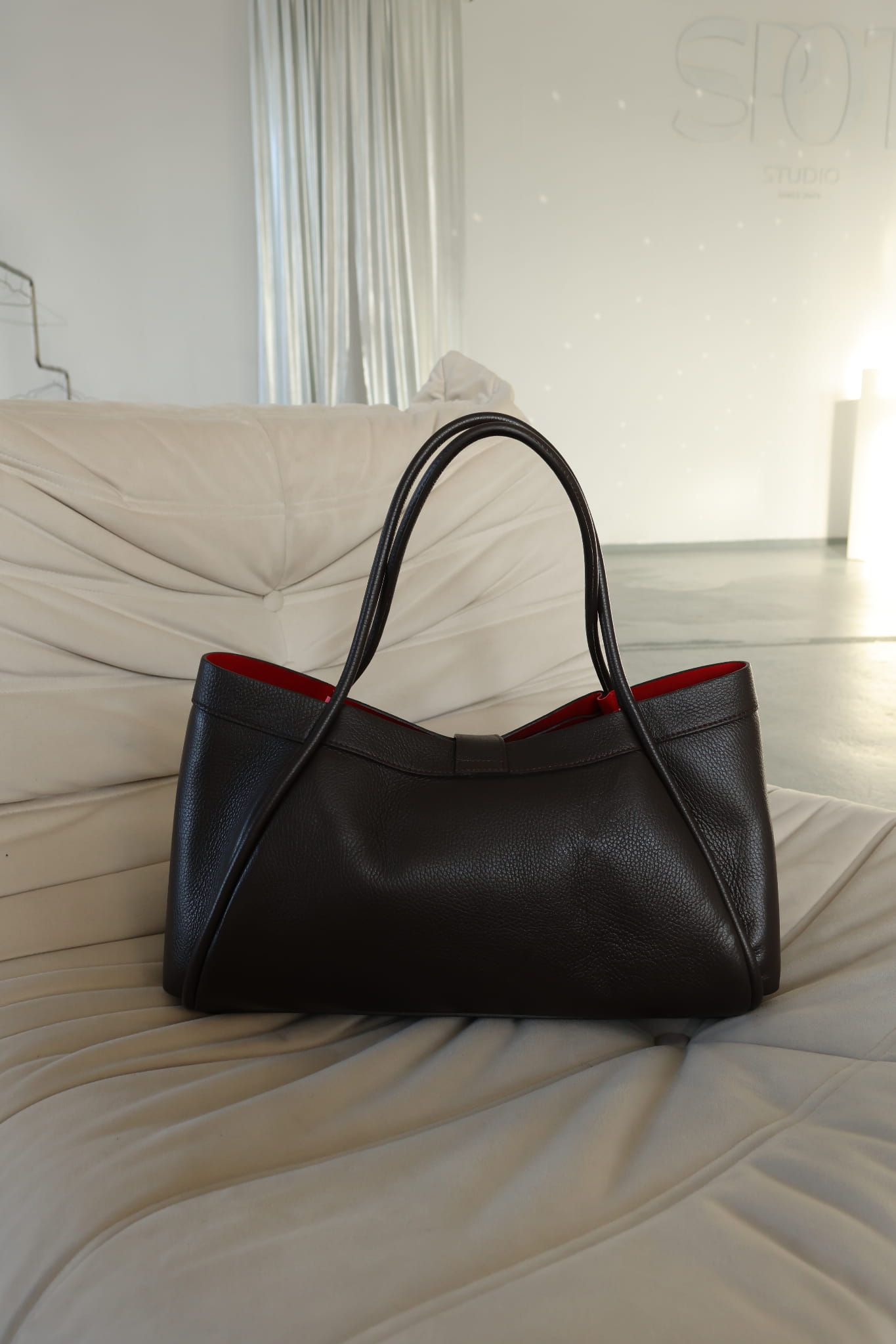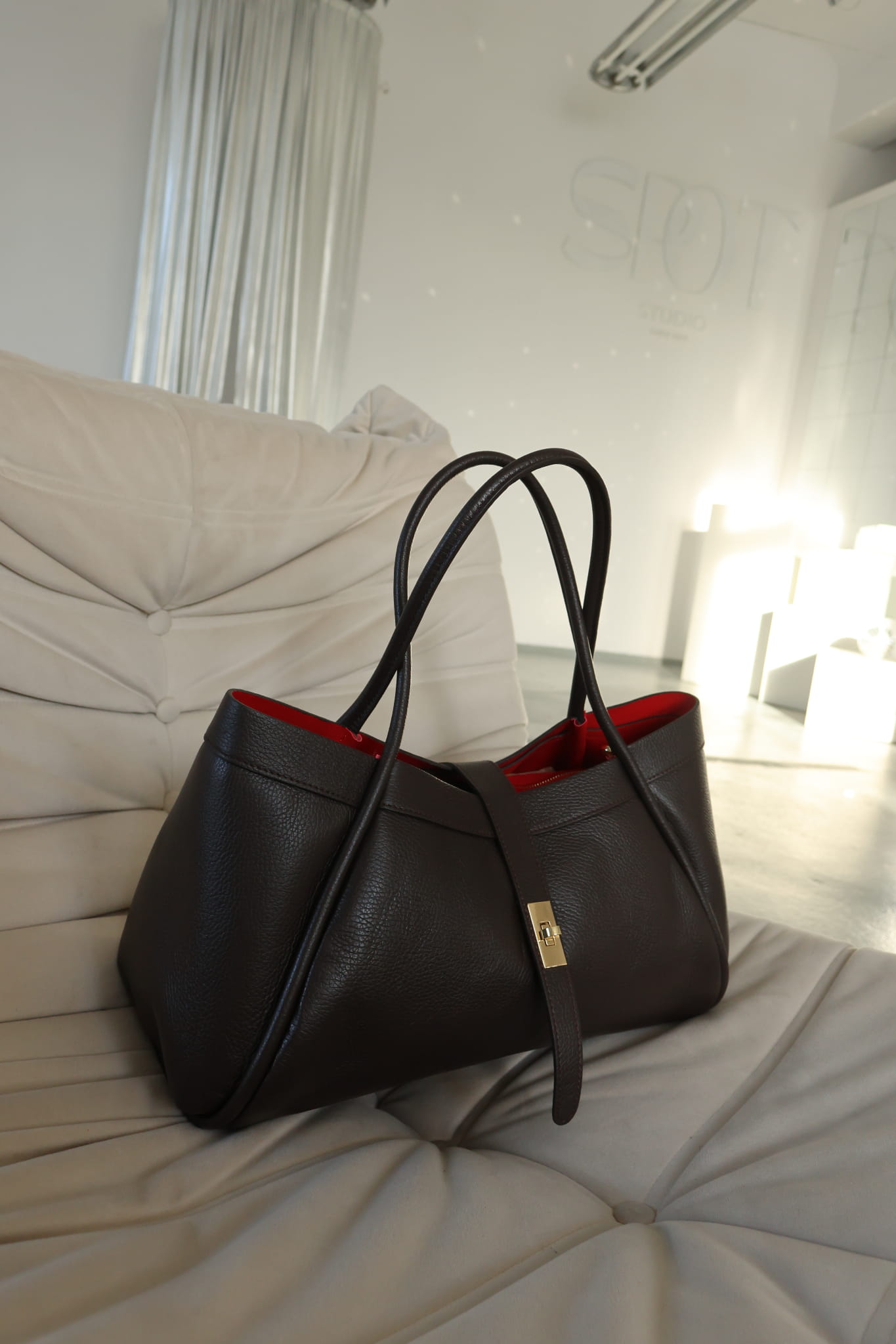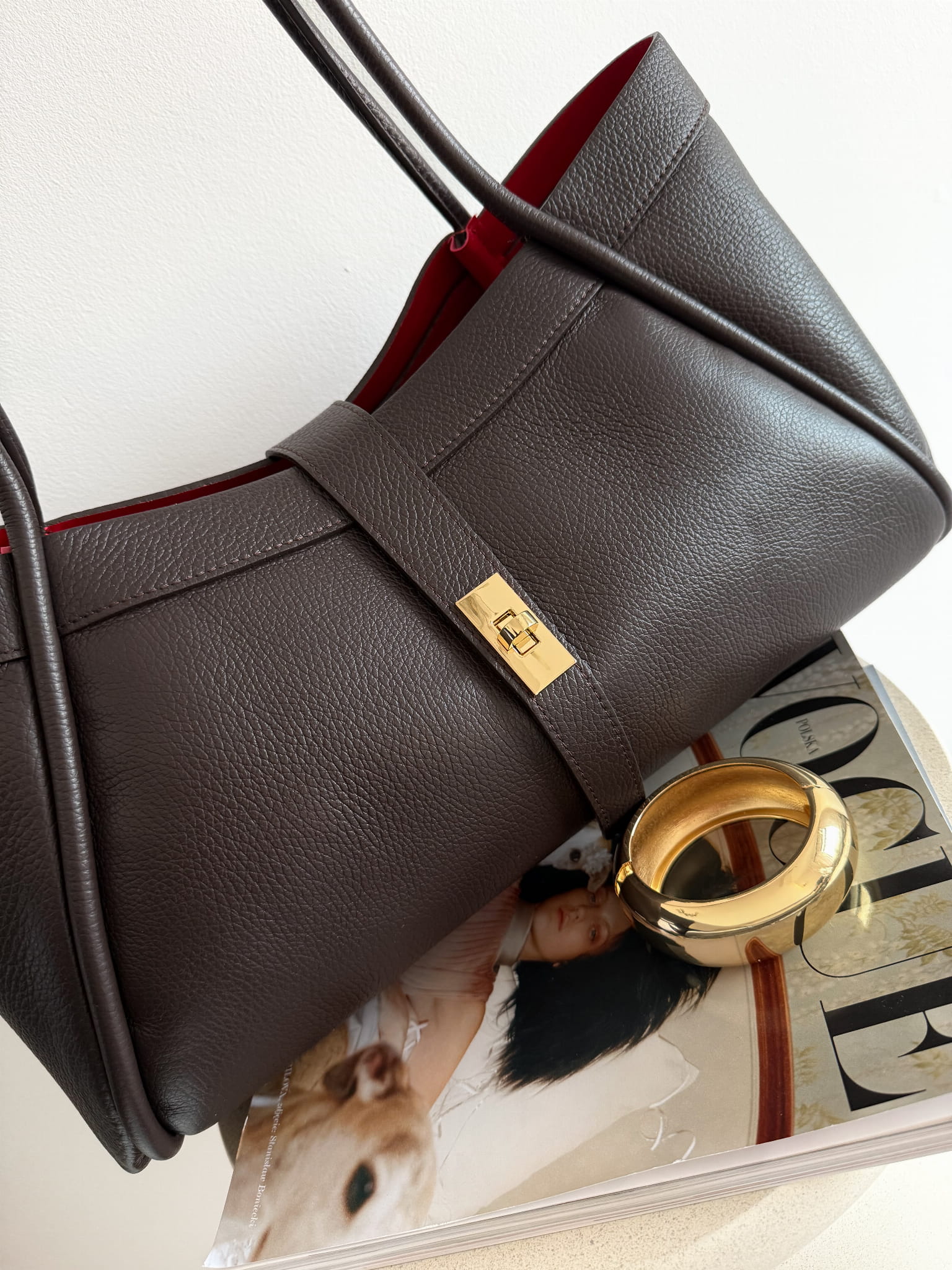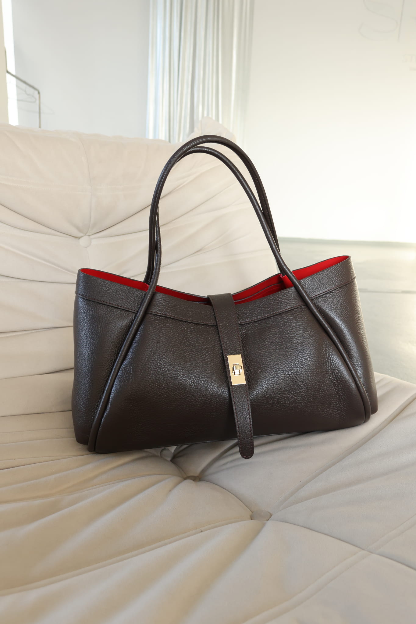 Stylowa torebka wykonana z naturalnej skóry w eleganckim brązowym kolorze. Wykończona skórą naturalną i ozdobiona subtelnym złotym zapięciem. Wnętrze w kontrastowym czerwonym kolorze dodaje charakteru, a dołączona praktyczna kosmetyczka ułatwia organizację. Idealna na co dzień i na wyjątkowe okazje.