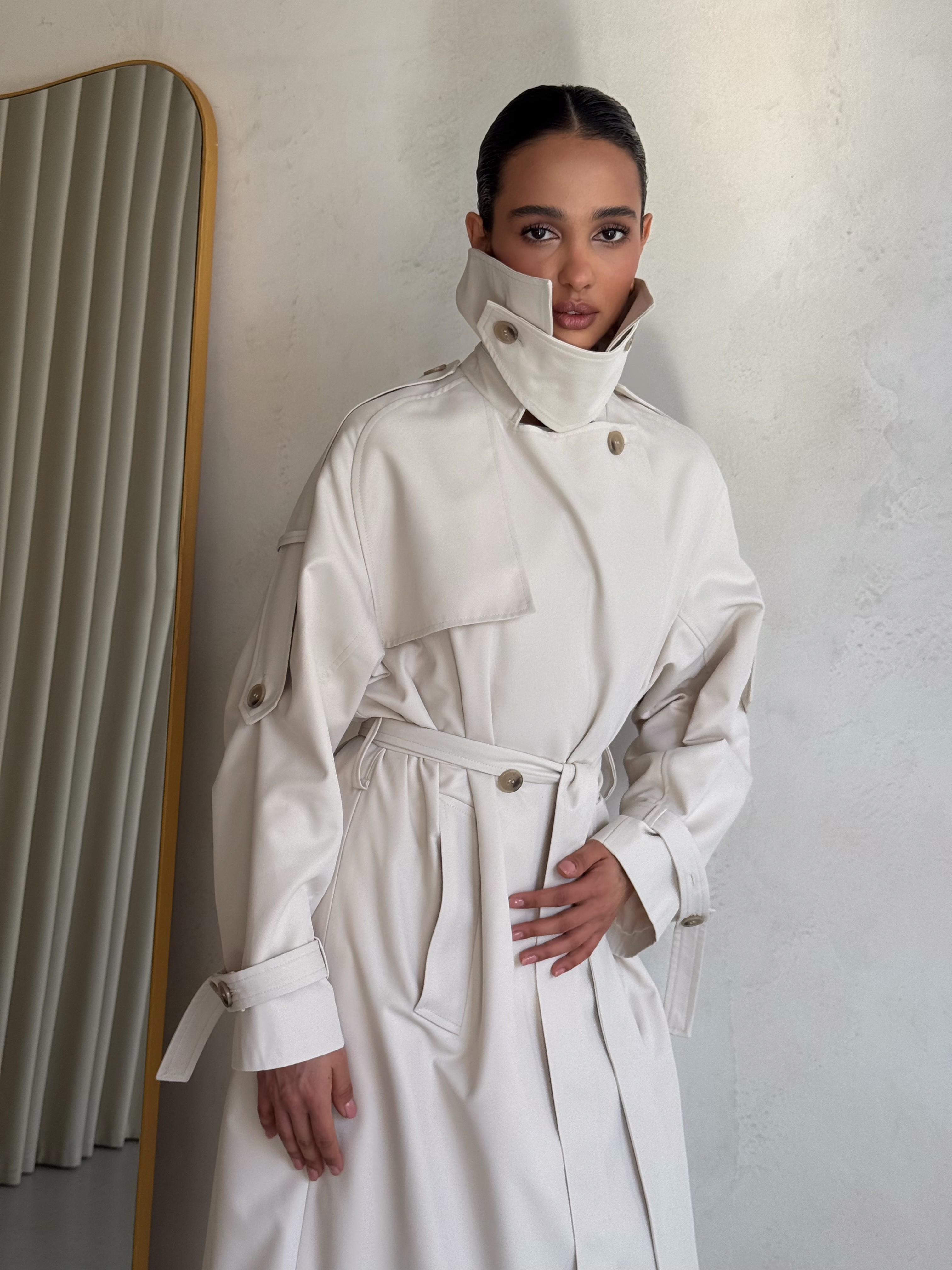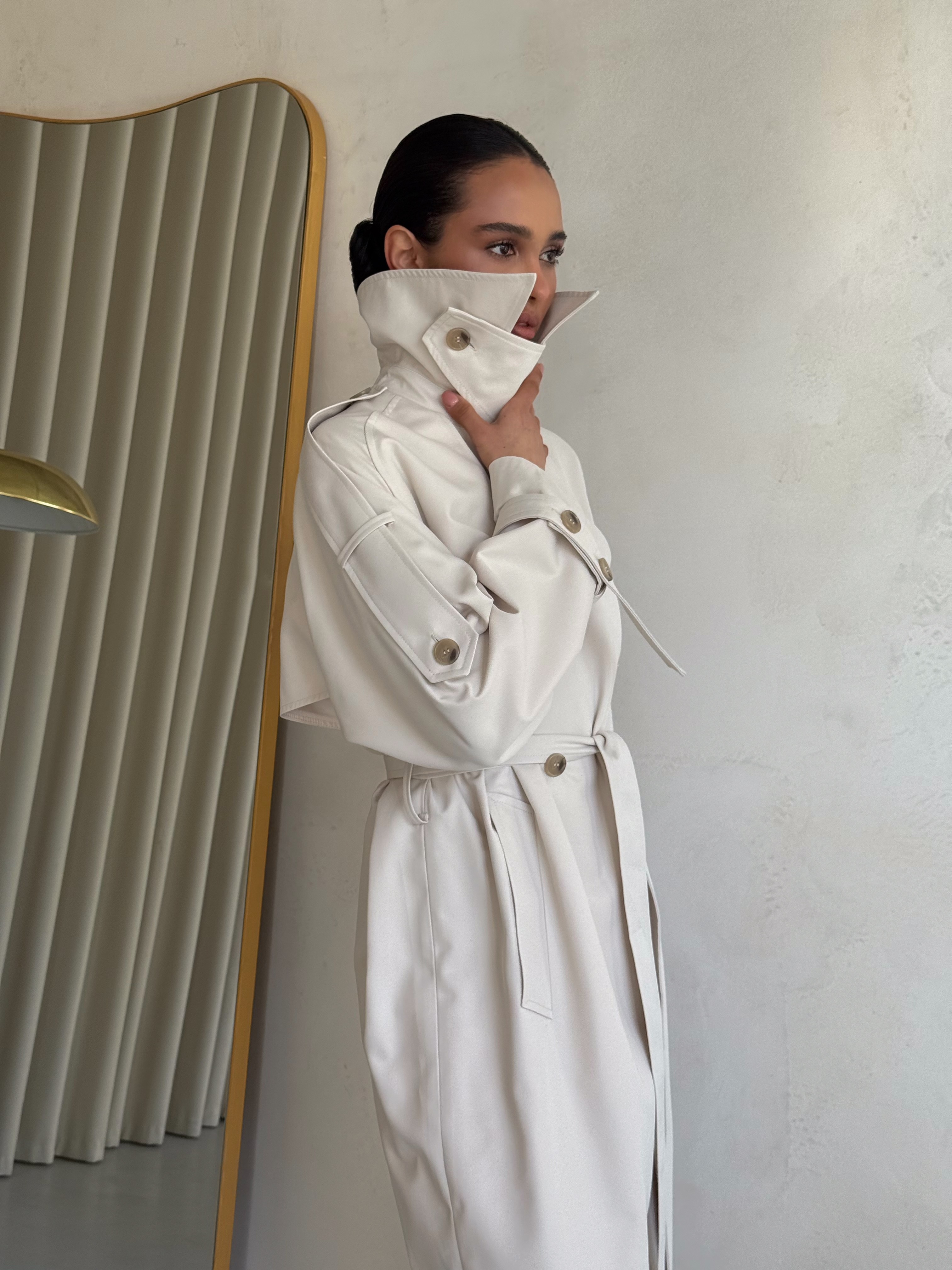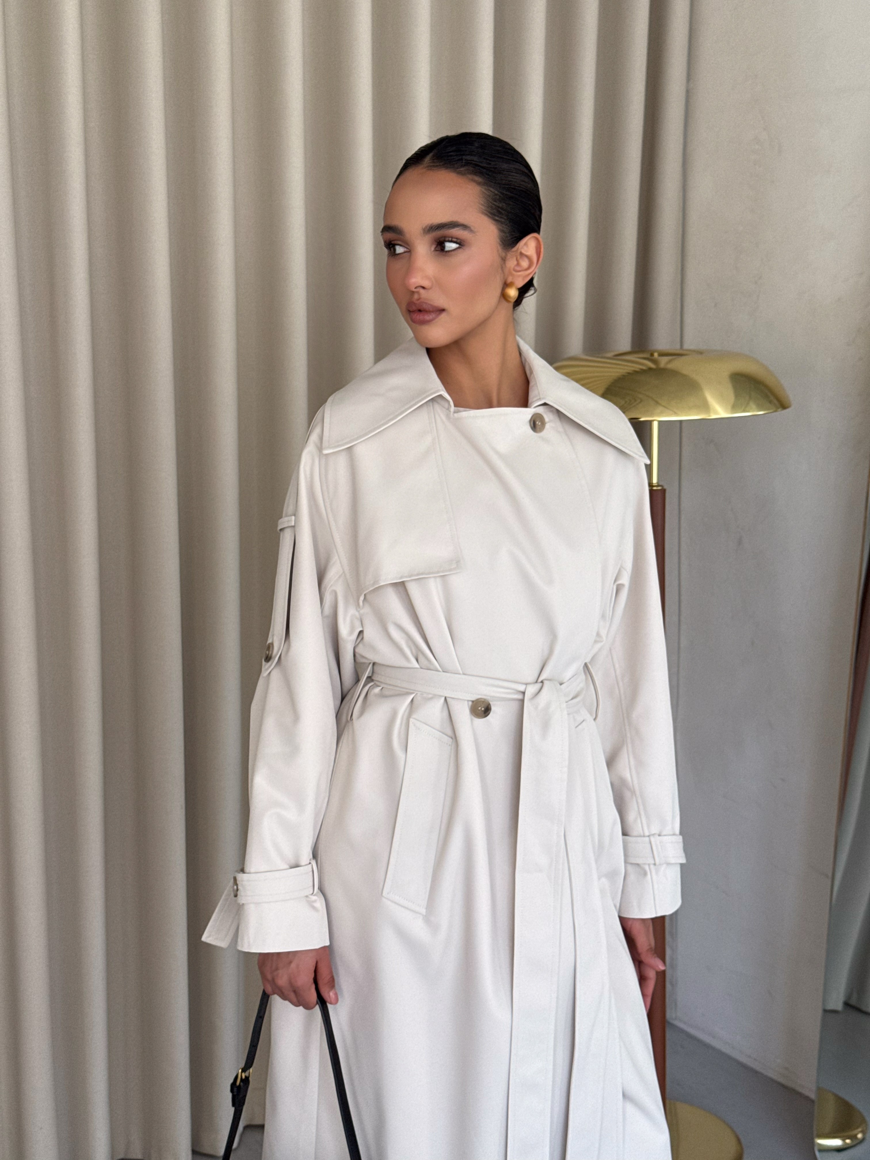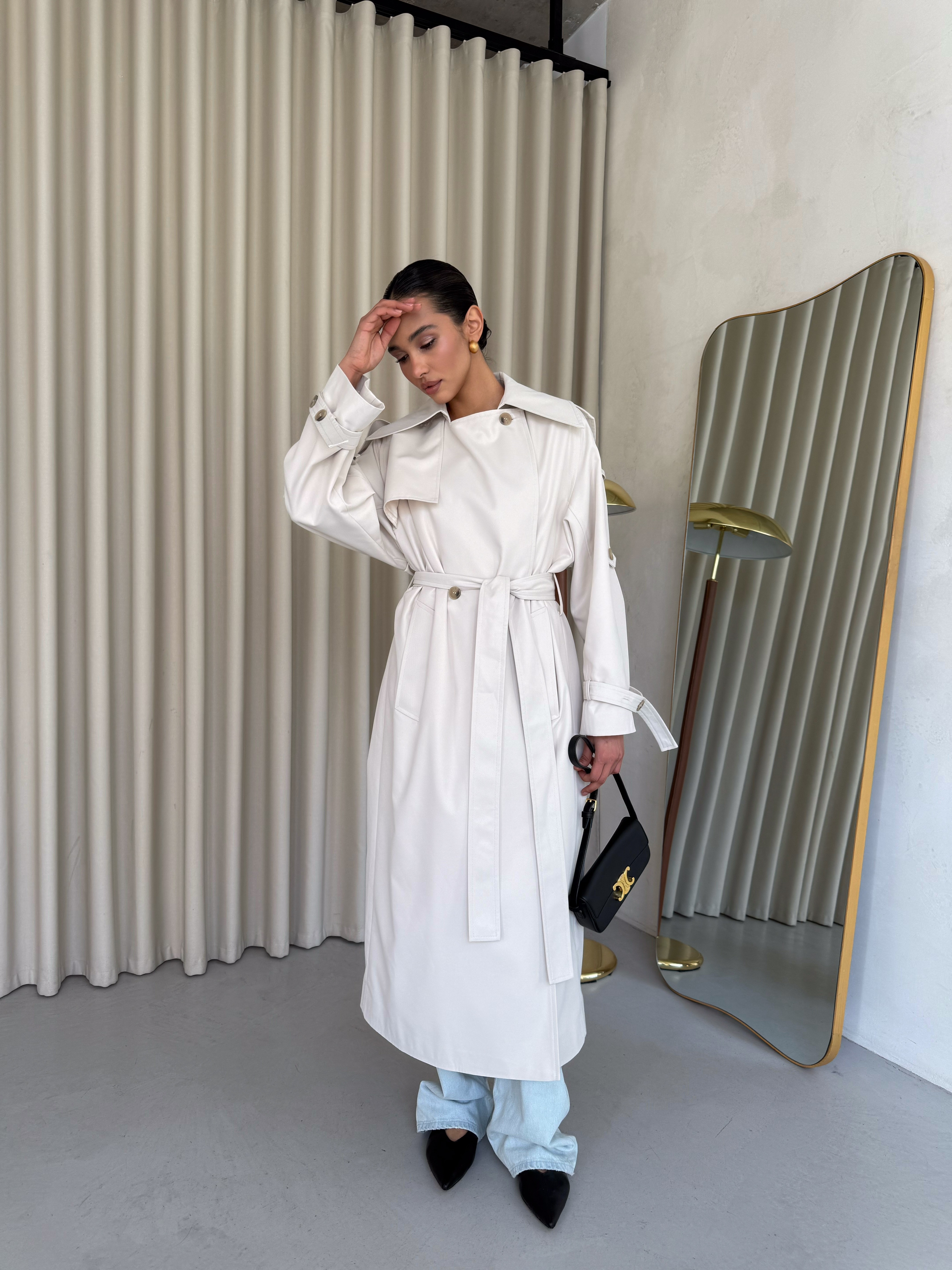 Trencz damski Ava – płaszcz z grubej bawełny 100% mleczny