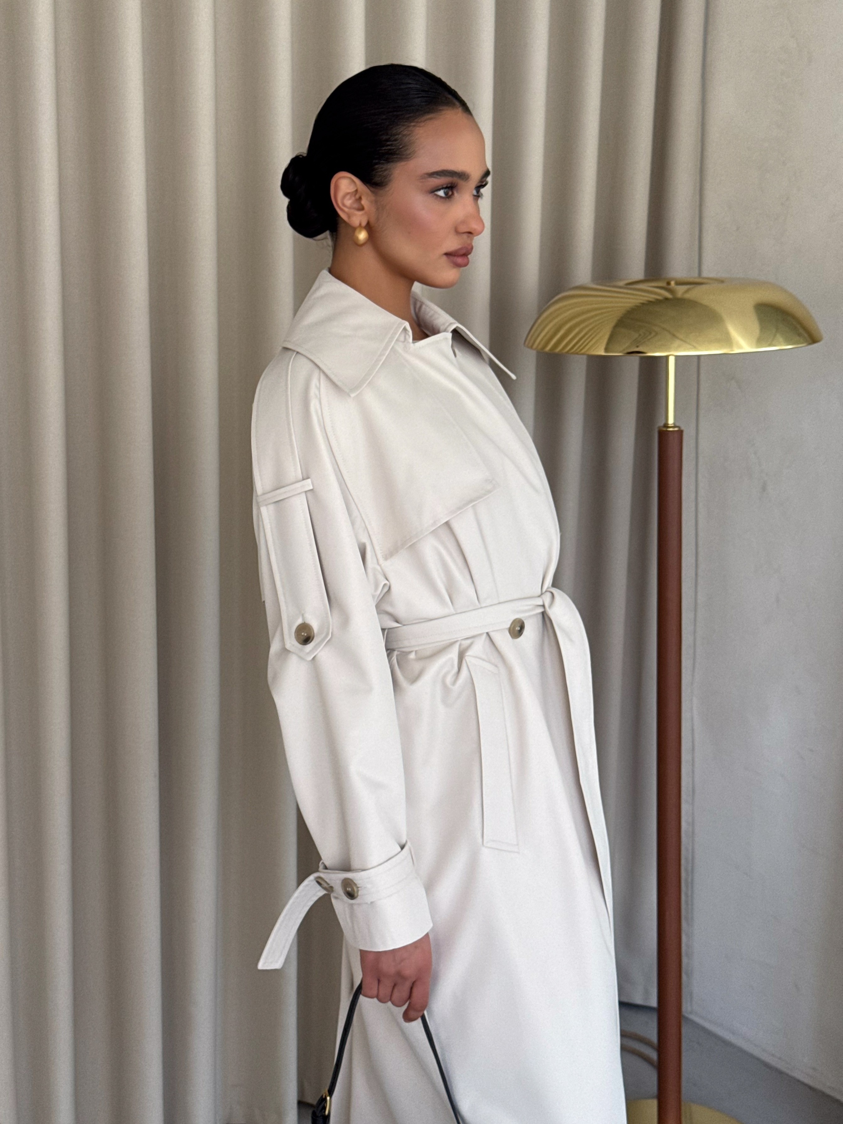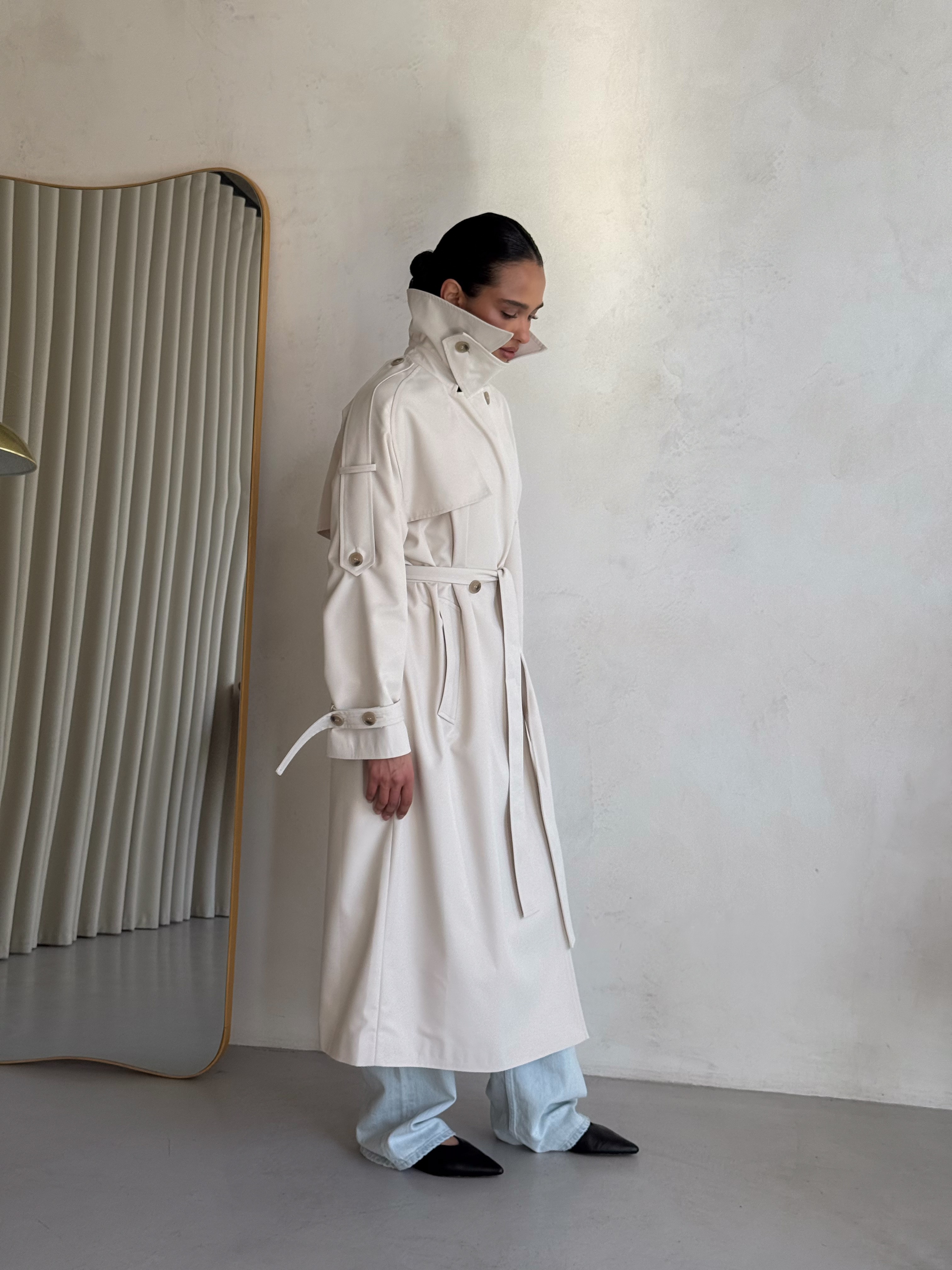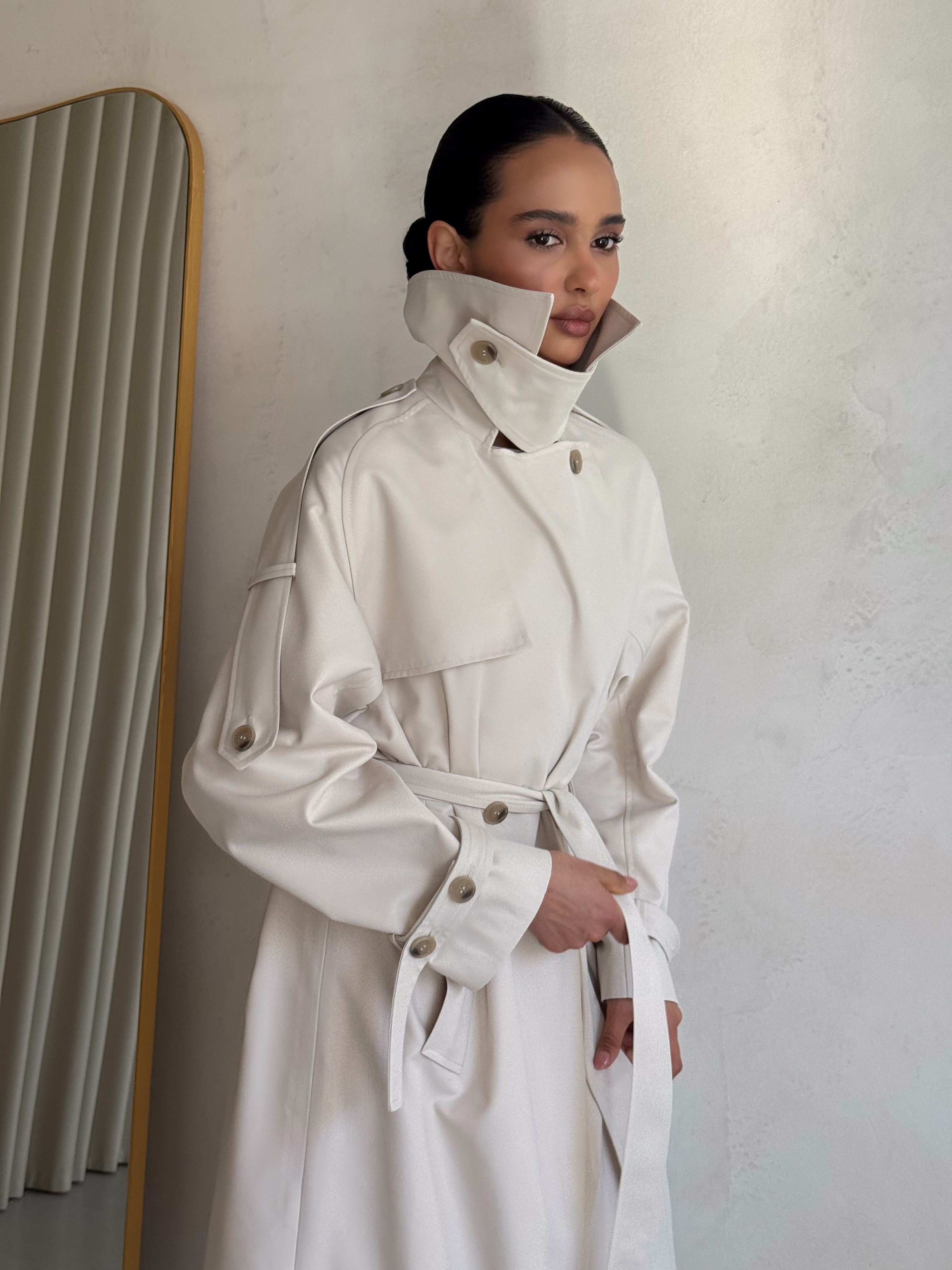 Trencz damski Ava – płaszcz z grubej bawełny 100% mleczny
