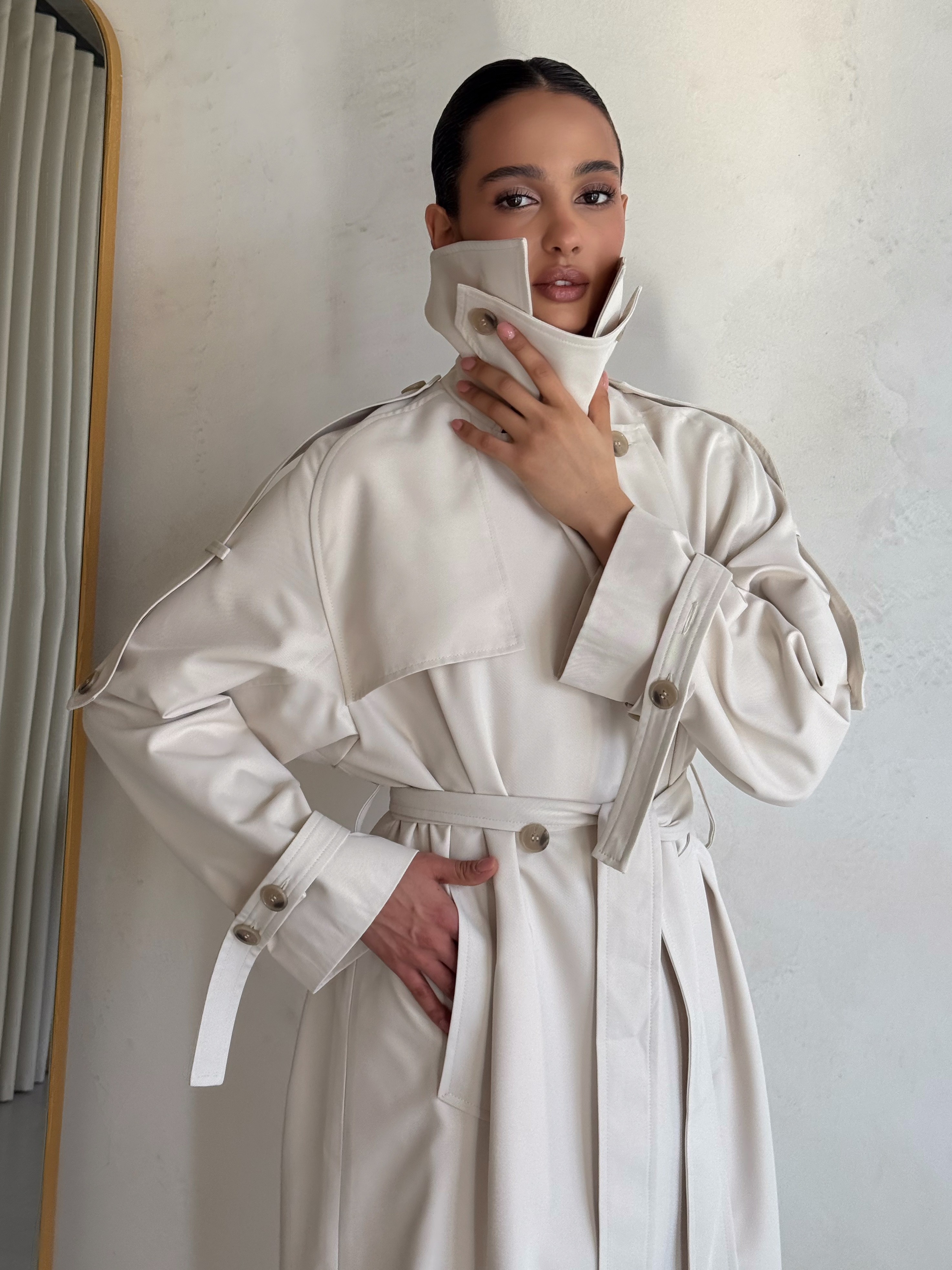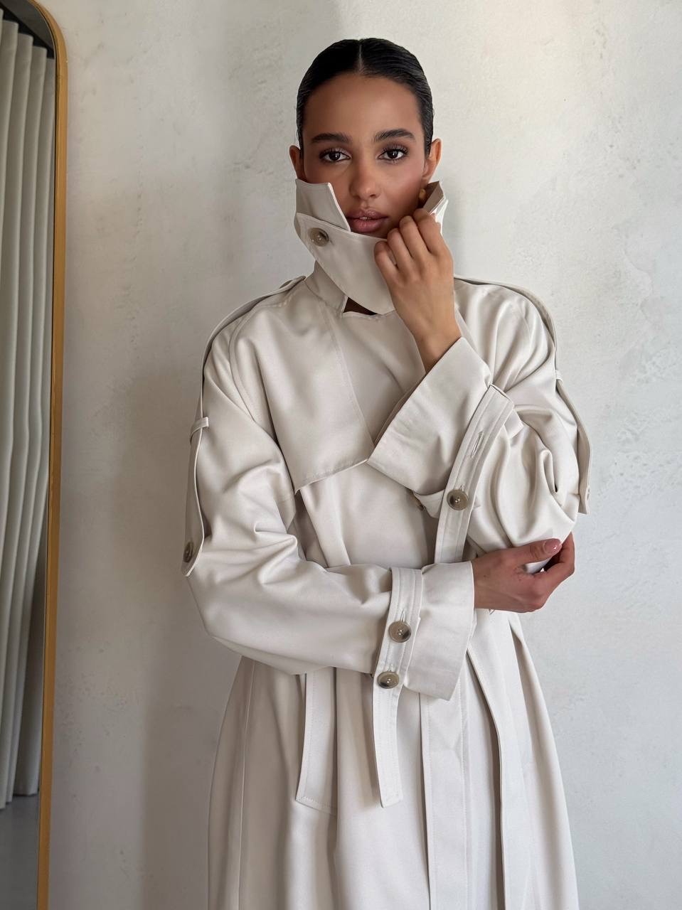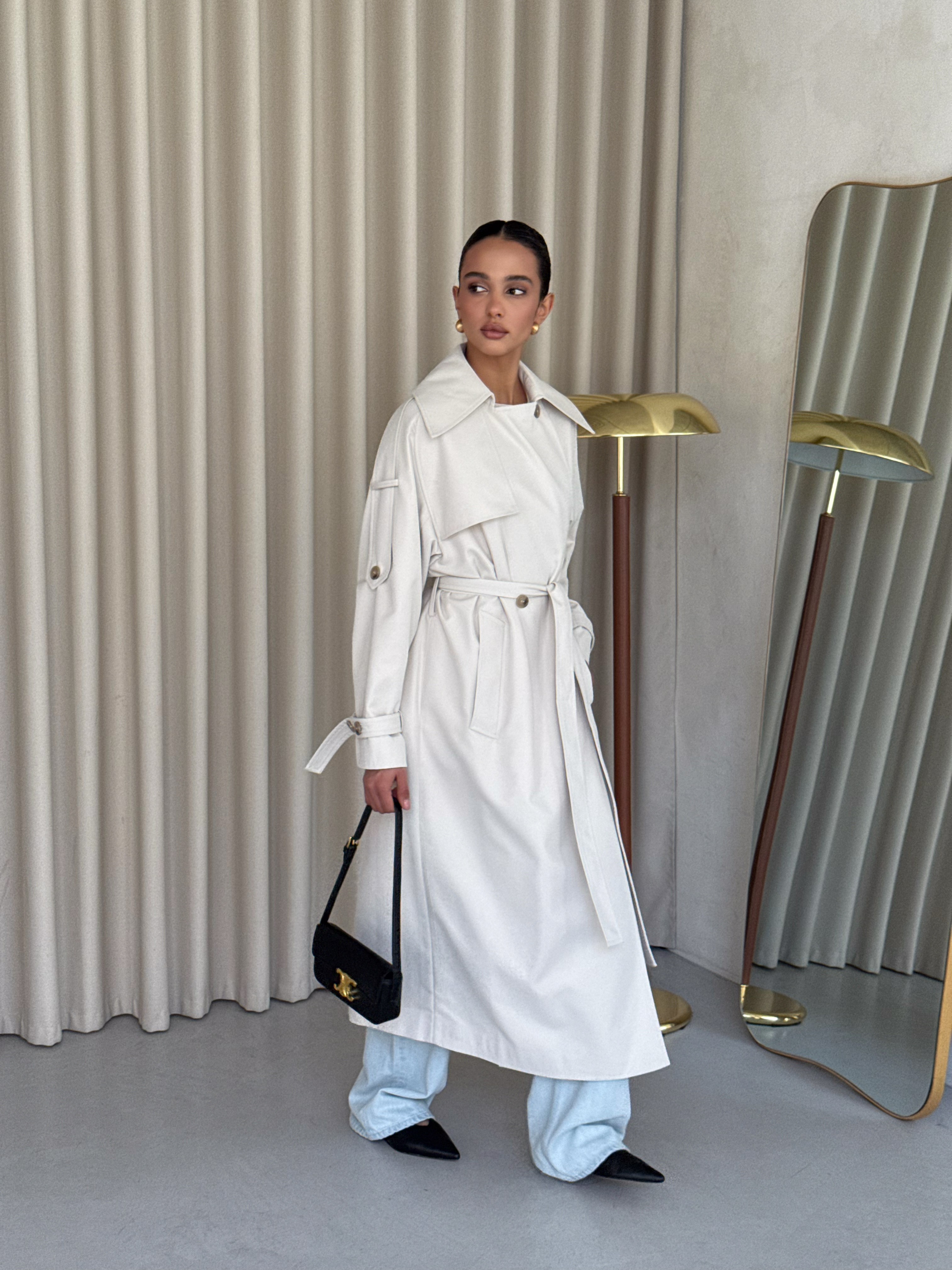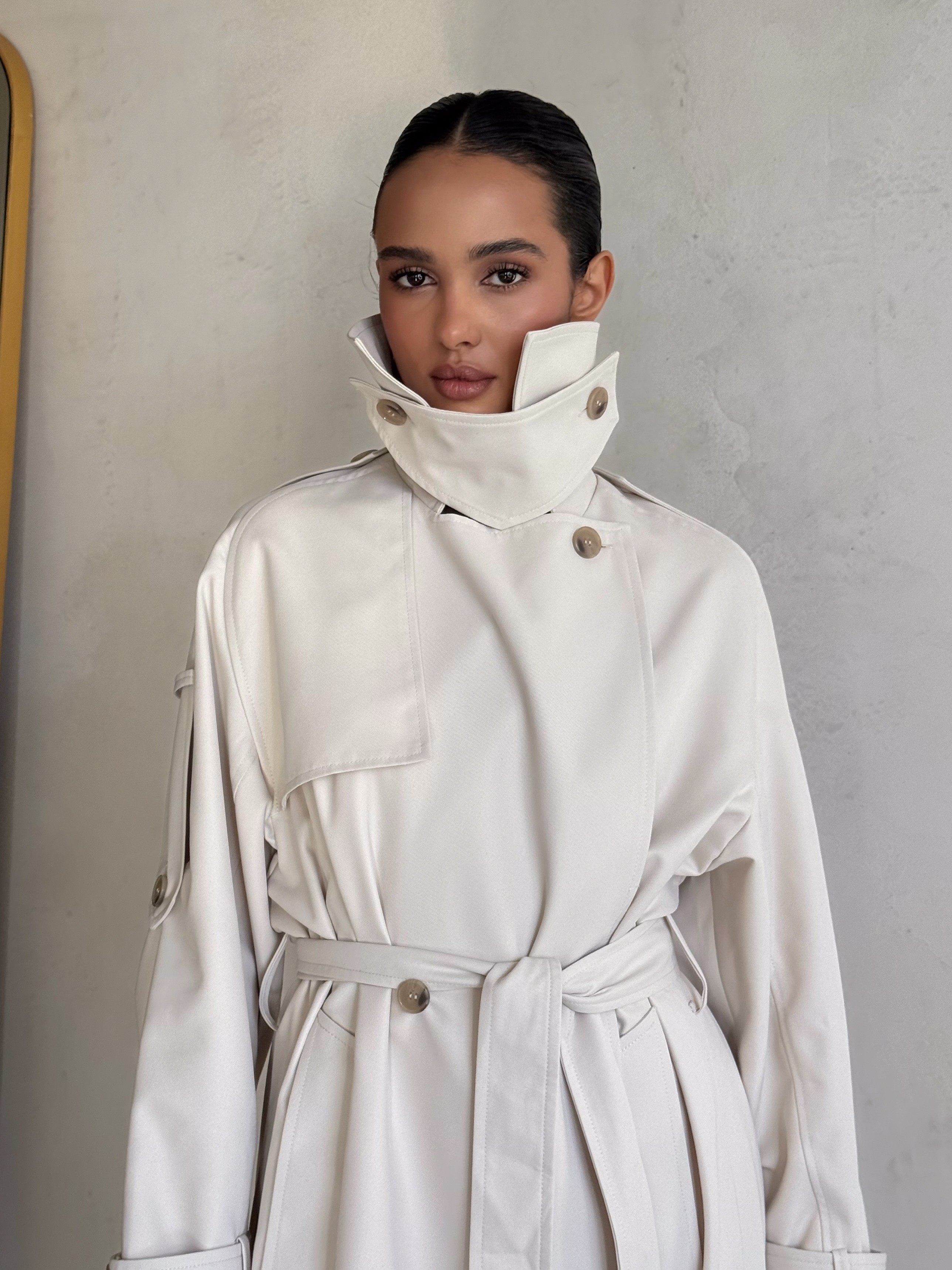 Trencz damski Ava – płaszcz z grubej bawełny 100% mleczny