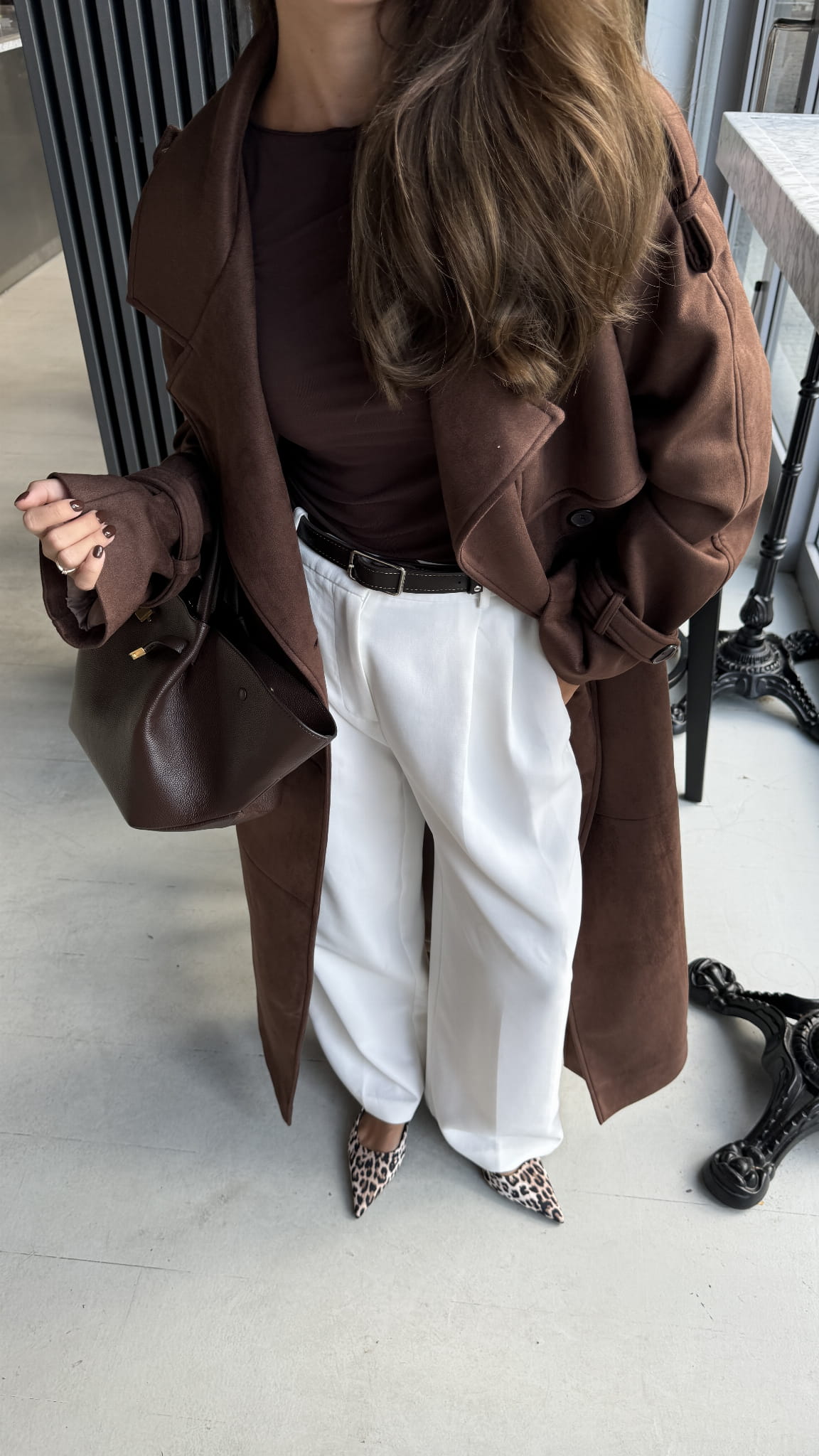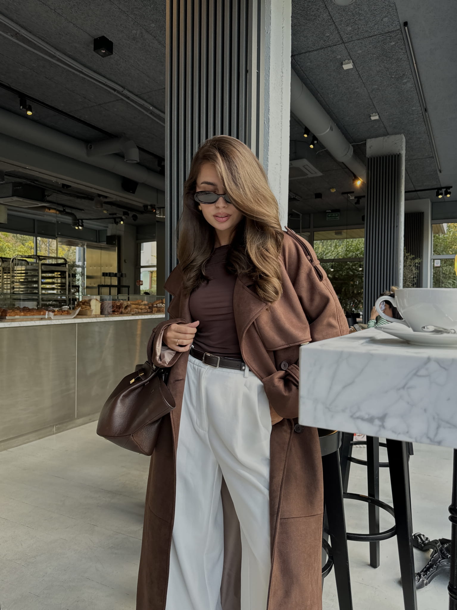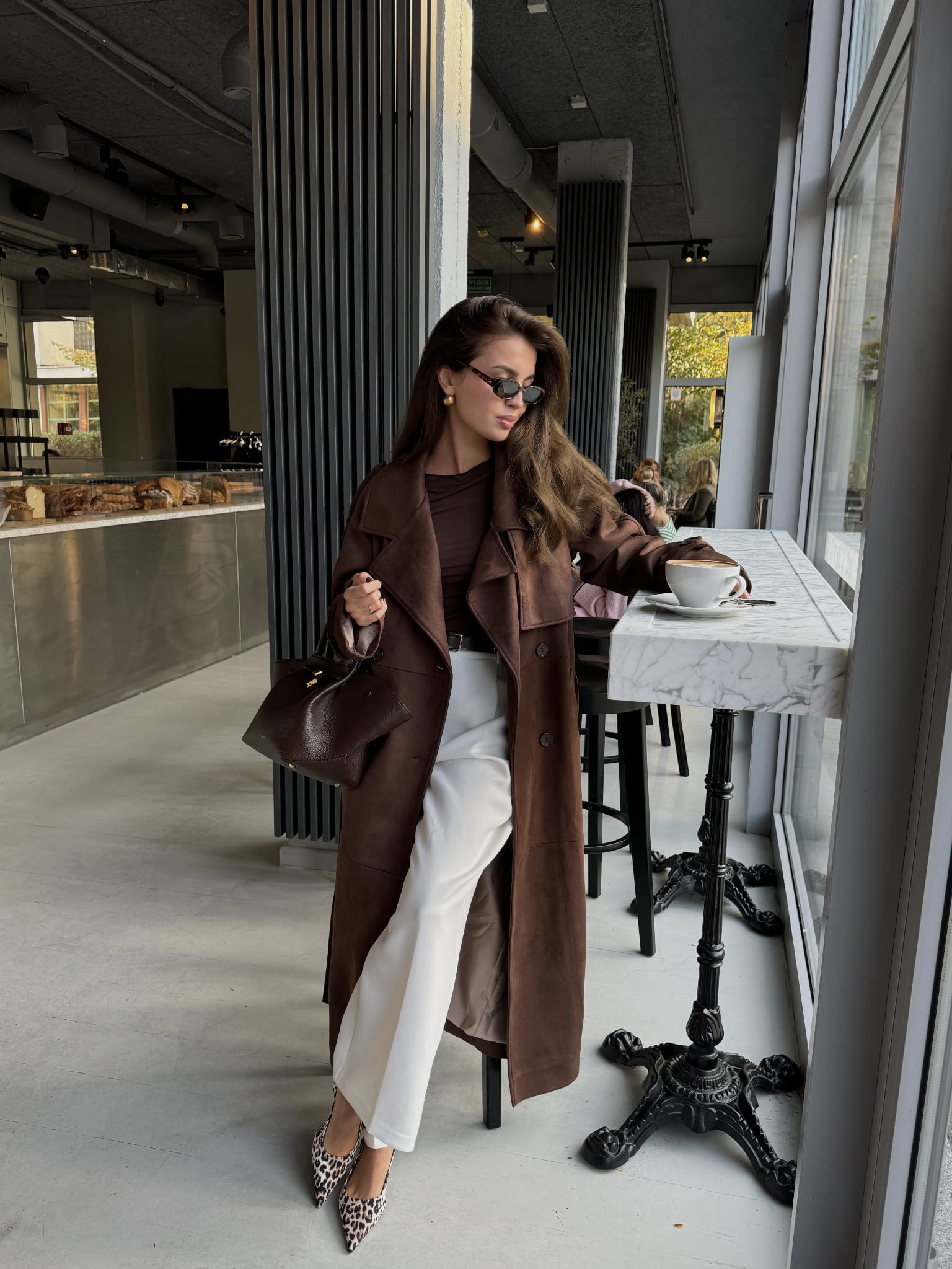 Trencz z eko zamszu – czekoladowy brąz | Velvet Clothes